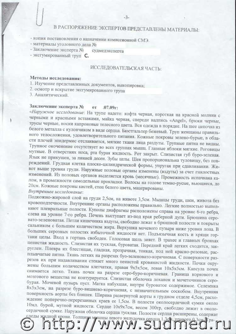 Мне трудно объяснить, чем руководствовались при проведении комиссионной экспертизы, да это и не моя задача. Главное, Вам от такого результата были претензии не от своих коллег? Если свои предъявляли, надо было расставить с ними все точки над "i". Цитата Просто я впервые столкнулся с таким изменением диагноза-на причина не установлена. Теперь по вашим вопросам, только не подумайте, что я жалуюсь: 1,2. Труп найден за 70км от меня (я межрайонник), меня там не было, следствию было главное, что нет повреждений. О воде и слушать не хотели. Гистолог от меня за 280км, и они очень осторожные в своих заключениях(особенно о сроках травм), заключение гист. я получил ч/з 42 дня после вскрытия (это у нас в порядке вещей), которому и был рад. Хоть гистолог прямо не написал, но и вы подумали как я. 3. Планктон я бы ждал ещё больше. Не взял, потому что за столько лет не помню положительного результата(не оправдание-моя недороботка), но в комиссионке тоже пусто. Ну, а потом область достали жалобы родственников-"вся избита" (а по родственникам у нас каждый 2-ой убит) и отсюда эксгумация. Плохо, что о воде никто не хотел слушать, это Вам на будущее! Отсутствие положительного результата в гистологии на планктон, не даёт Вам право не брать материал для исследования. Это не претензия, а совет! В комиссионке пусто не от того, что его - планктона вообще не было, всё зависит от вида утопления, "сухое", "мокрое". У Вас описаны пятна Лукомского-Рассказова-Пальтауфа, правда неконкретно, но это куда деть? Цитата Спасибо, что нашли время на меня. Пожалуйста! P.S.: Версия озвученная в последнем пункте выводов комиссионки у меня лично, вызвало недоумение и улыбку Удачи Вам и оптимизма! |