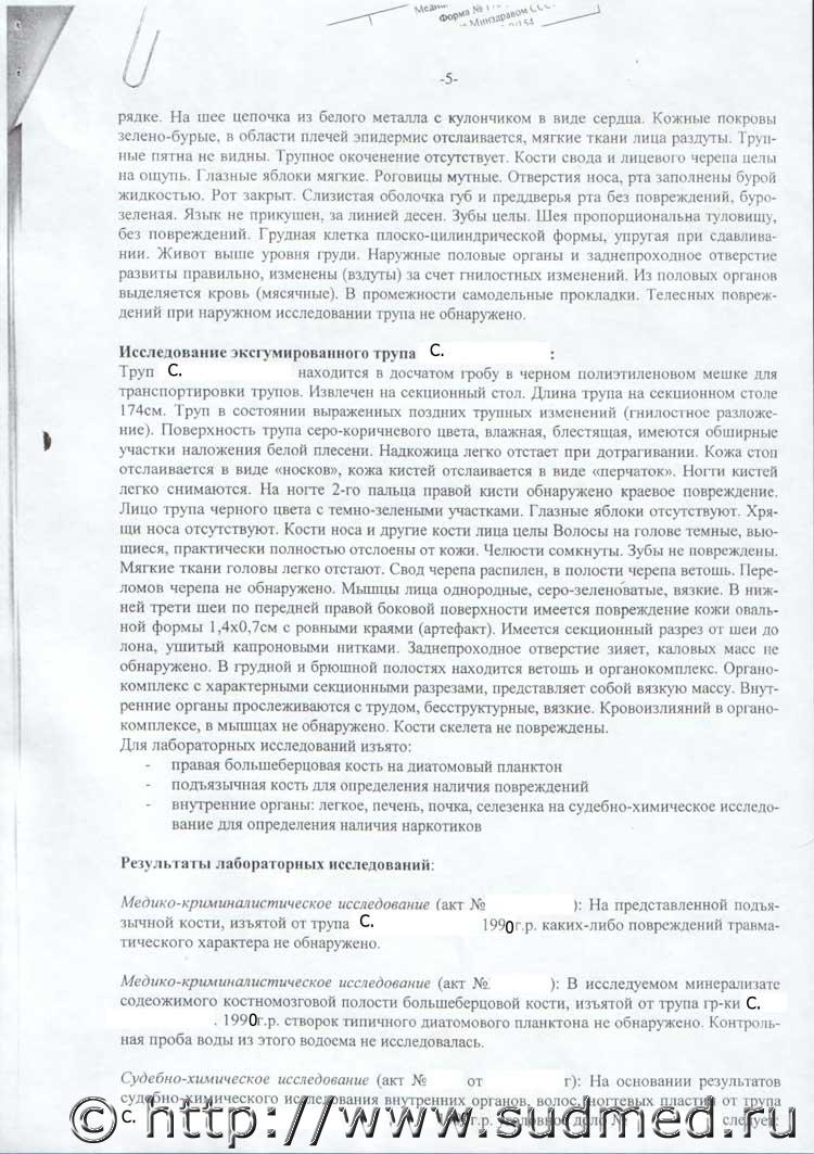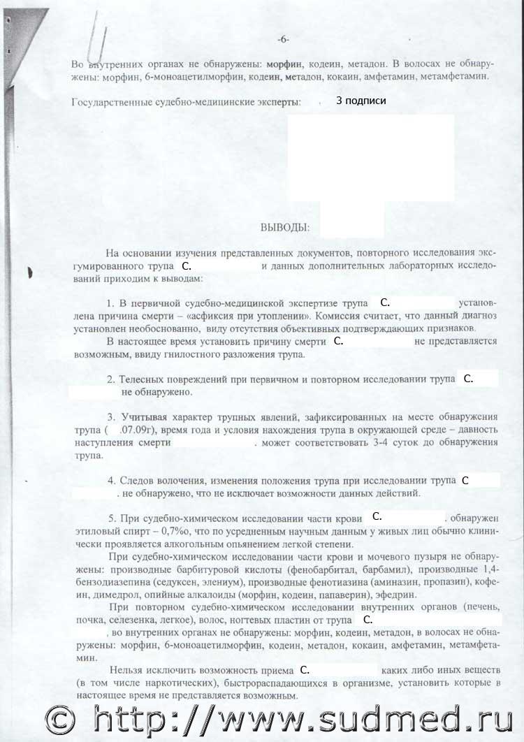Смена диагноза комиссионной экспертизой, Утопление на причину смерти не установлена |
