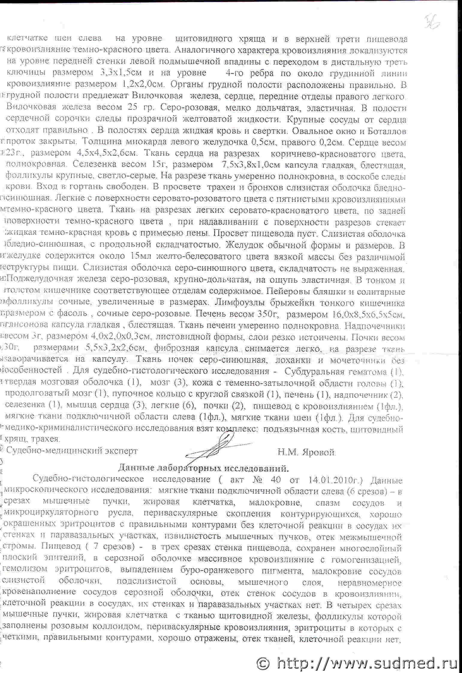 Уважаемая Galy! 1) Решение вопросов о обстоятельствах причинения телесных повреждений или роде смерти (убийство, самоубийство, несчастный случай) - не входит в компетенцию судебно-медицинского эксперта, так как включает юридическое понятие - умысел (разрешаемое лицом, назначившим судебно-медицинское исследование). 2) У умершего 2-х месячного ребенка при судебно-медицинском исследовании был обнаружен комплекс телесных повреждений, составляющих в клиническом понимании - закрытую черепно-мозговую травму с повреждением кости свода черепа, кровоизлияний под твердую и мягкие мозговые оболочки, в мягкие ткани головы, являющихся непосредственной причиной смерти. Данные телесные повреждения, учитывая их характер и локализацию, не имеют ничего общего с родовой травмой и инсультом (ни по механизму, ни по времени образования), и тем более с острой респираторно-вирусной инфекцией (гриппом), протекающей в тот промежуток времени в Вашей семье. 3) Судебно-медицинское исследование ребенка проводил врач-судмедэксперт, но не патологоанатом. 4) В вашей конкретной ситуации история родов не будет иметь какого-либо значения в проведении судебно-медицинского исследования. 5) У Вас на руках уже имеется результат судебно-медицинского исследования трупа, проведенного опытным врачом судебно-медицинским экспертом, подтвержденный данными судебно-гистологического исследования. Криминалист в данной ситуации Вам не понадобится. Сочувствую Вам, но увы это так и не иначе. Очень признательна всем за ваши профессиональные разъяснения. Вы очень-очень помогли мне! Следствия ведь никакого не было, и нет, только невероятно грубое и беспощадное обращение с несчастной семьей моего брата. И родители просто не верят в то, что случилось, и я не хотела верить... Но факты , ваши доказательства, по всей видимости, действительны, и это ужасно. Еще раз -огромное спасибо всем и вашему сайту. |