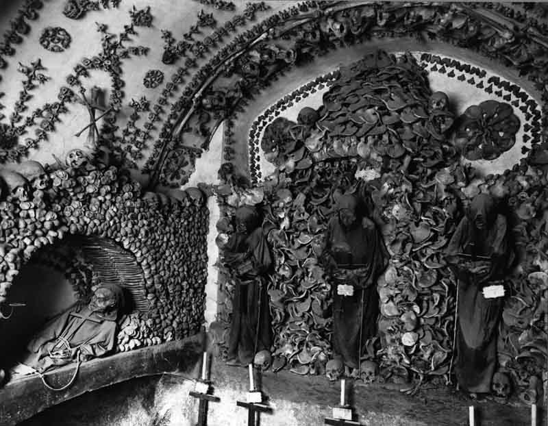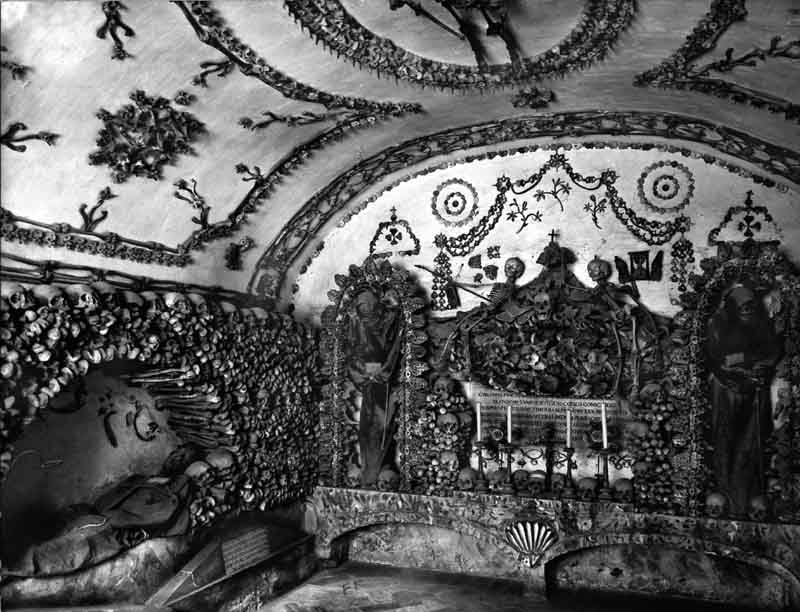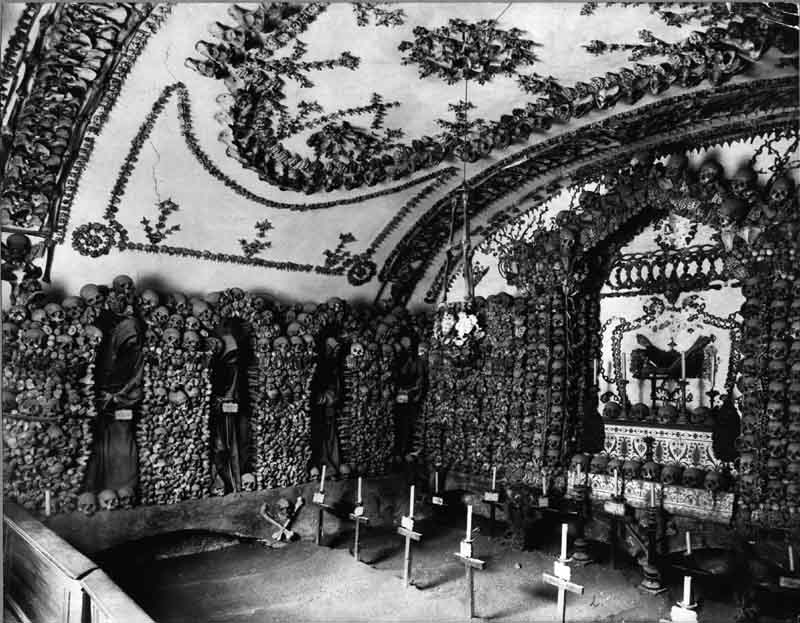 Был в Чешской костнице давно, но очень запомнилось. Там есть еще черепа убиенных - с различными повреждениями, хоть музей создавай по мед. криму. А на входе из костей выложены буковки - что-то вроде того, что к костям надо относиться с пониманием, так как это были живые люди, и нас то же самое ждет...