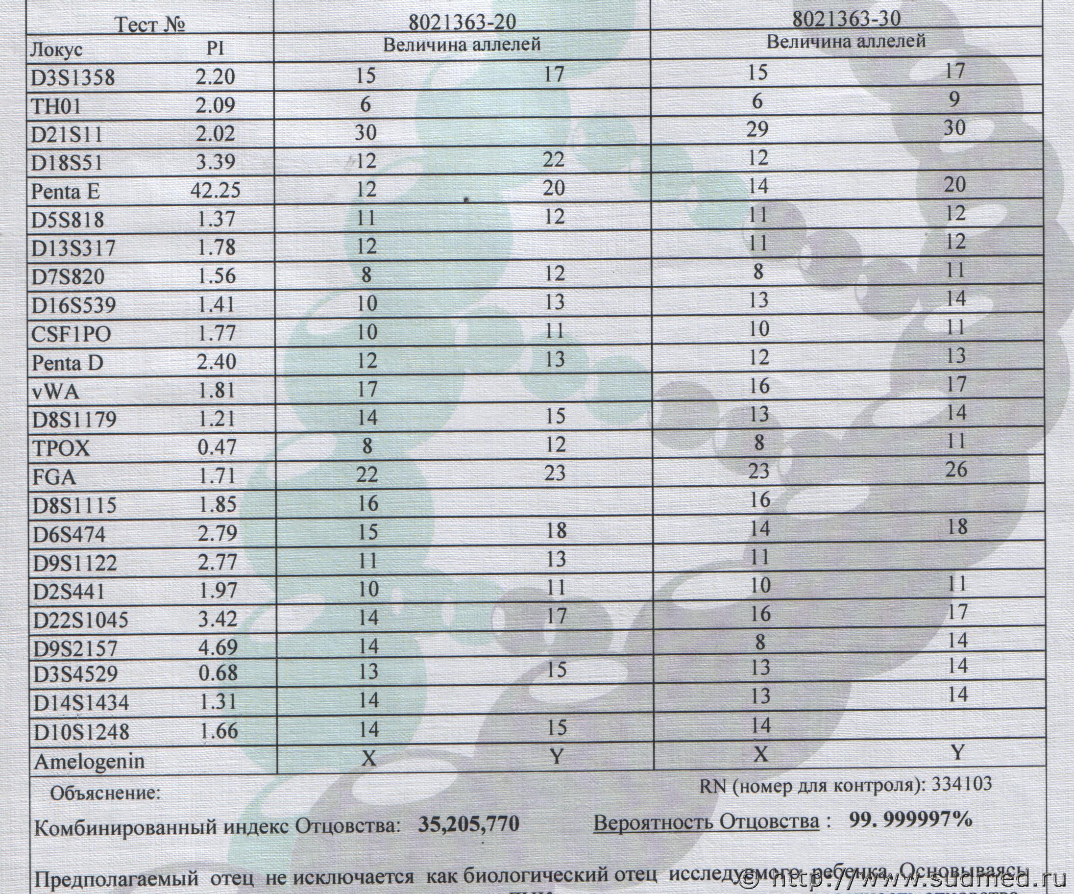 Смутила только одна цифра - индекс отцовства по локусу Penta E, при любых раскладах должен быть не больше 4.
