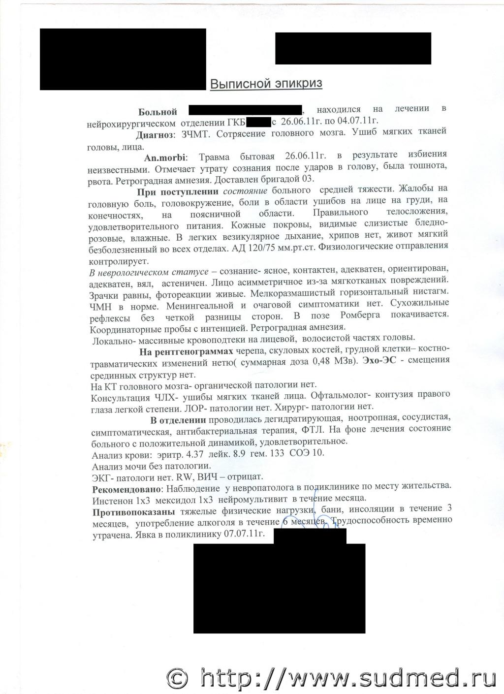 Будьте добры,опишите пожалуйста степень полученных повреждений. Травма с 26.07.11 До сих пор нахожусь на больничном в связи с нечетким фокусированием зрения,а так же головными болями,но уже на амбулаторном лечение.