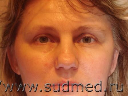 Вред здоровью средней тяжести. В том числе, снижение остроты зрения с 0,9 до 0,3 - в пределах вреда здоровью средней тяжести. Если дефект стенки орбиты привел к значительно выраженному нарушению мимики, искаженияю черт лица - СУДОМ (не экспертом!) может быть установлено "обезображивание лица" (один из квалифицирующих признаков тяжкого вреда здоровью). Как я уже говорила, у меня один глаз стал больше другого (в приложенных файлах). В настоящий момент решается вопрос о пластической операции. Т.е. судмедэксперты согласно п. 6.10 "Правил" должны только установить является ли данное повреждение лица изгладимым или неизгладимым? К тому же медицинское обследование у меня ещё не закончено. Невропатолог направил меня на лечение в психо-неврологический диспансер, где врач отправил меня на 1,5 месяца лечения на дневном стационаре, а офтальмолог и челюстно-лицевые хирурги до сих пор решают, кто же из них должен направить меня на пластическую операцию. Т.е. фактически медицинское обследование у меня ещё до конца не пройдено. Могут ли в этом случае судмедэксперты определить степень тяжести? Ведь согласно п. 27 Заключительных положений "Правил..." степень тяжести вреда не определяется, если: - на момент медицинского обследования живого лица не ясен исход вреда здоровью, не опасного для жизни человека. Эскизы прикрепленных изображений |