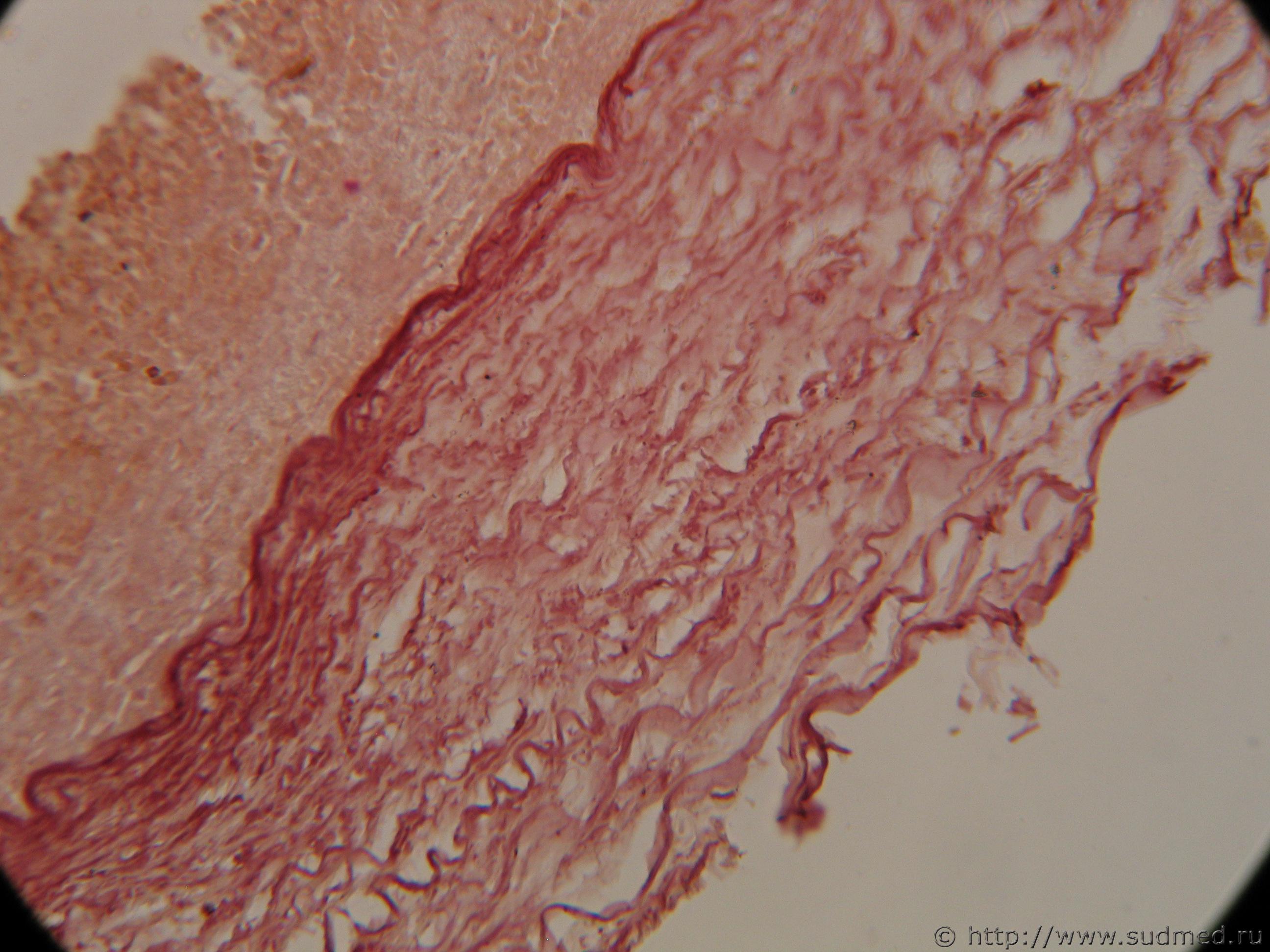 Во-во, я не проверял, но Меркулов ещё пишет о сочетани способа Вейгерта с последующим подкрашиванием по ван-Гизон: эластика - темно-синяя, а коллаген (по идее) красный. Кто-нибудь проверял?