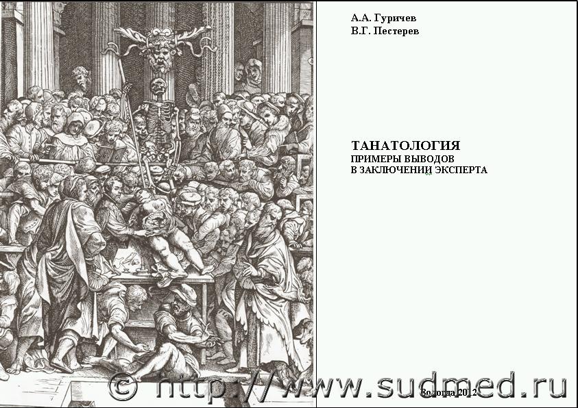 А.А. Гуричев В.Г. Пестерев. Танатология. Примеры выводов в заключении эксперта. Руководство для врачей – Вологда: Полиграфист периодика. 2012. 287с.