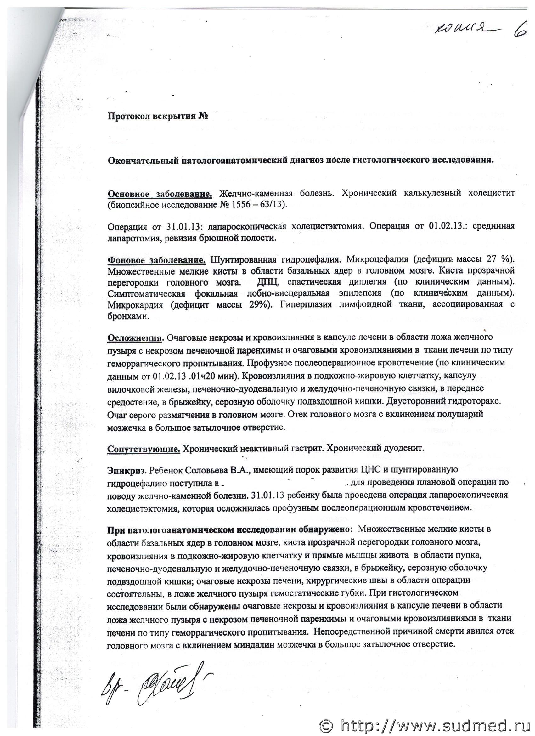 Помогите пожалуйста разобраться в причине смерти моей дочки!!! Дочке было всего 3года 10 мес. Лапораскопическая операция по удалению желчного пузыря. В справке основная причина смерти -отек головного мозга, вторая-послеоперационное острое проффузное кровотечение??????? Откуда взялось кровотечение????? Паталогоанатом пишет что все швы состоятельны источник кровотечения не выявлен.