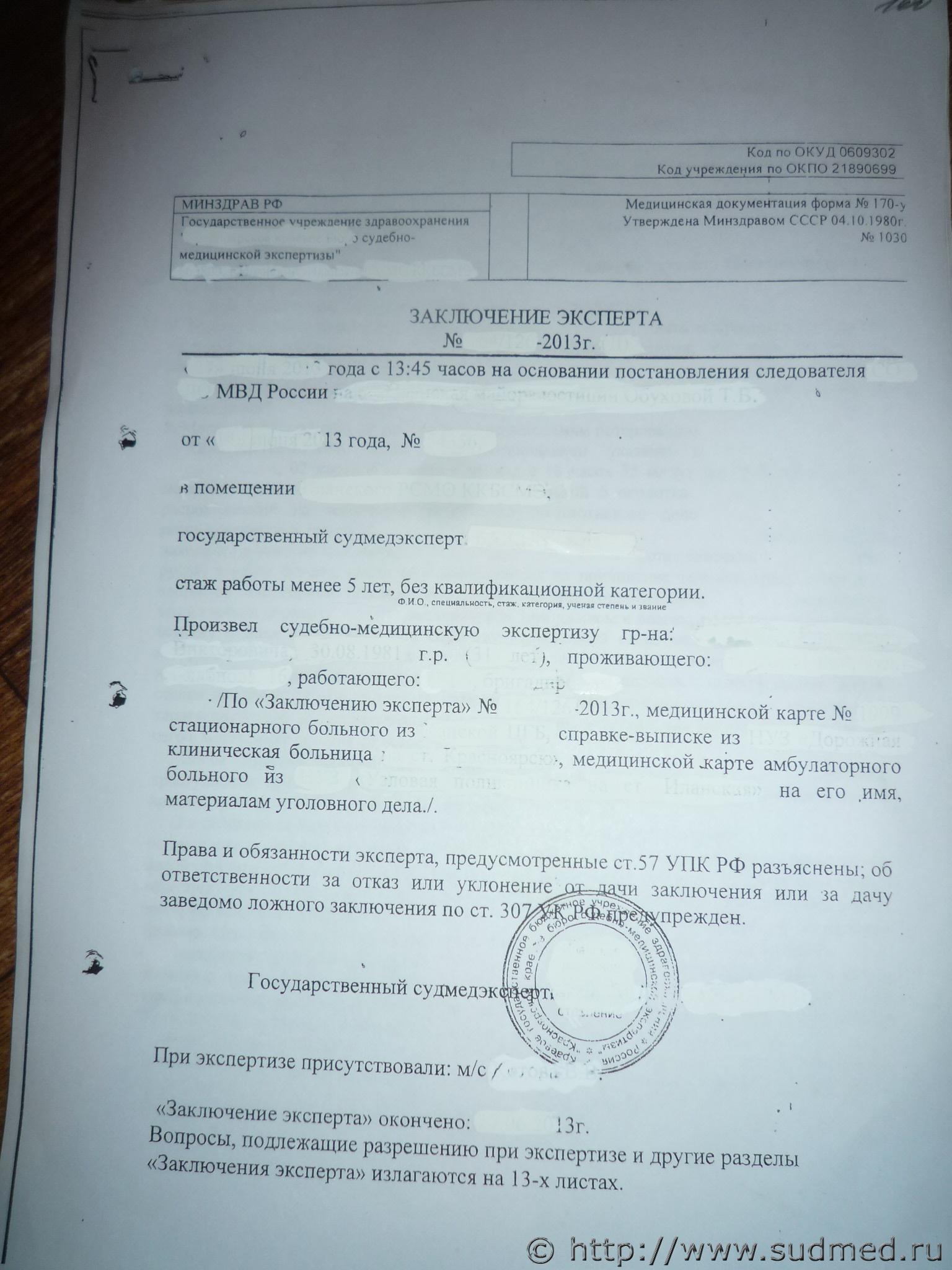 В любом случае нам нужен документ,оформленный судебно-медицинским экспертом. См.пункт 7.3.1 нашего форума. |