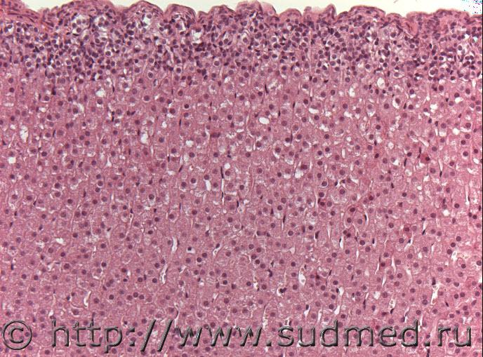 Животные в нашей лаборатории живут в комфортных условиях, т.е. в комнатах содержания животных поддерживается определенный температурный режим, давление и влажность. Это линейные животные, которые выращивают в питомниках специально для проведения доклинических исследований. Представленную морфологическую картину я часто наблюдаю и у интактных животных. Единственным стрессом, который они могут испытывать - это эвтаназия в камере с углекислым газом, но этот момент проходит быстро. Возможно, этот фактор может явиться причиной развития представленной морфологической картины, если иметь в виду эозинофильные локусы, но с моей точки зрения это некробиоз, т.е. явление обратимое. Что касается светлых клеток, то это не гидропическая дистрофия, а светлоклеточная трансформация, связанная с повышенной секреторной активностью клеток, вырабатывающих стероиды, которые являются соединения липидной природы. В процессе проводки жироподобные вещества "вымываются" из клеток и клетка выглядит "пустой". |
