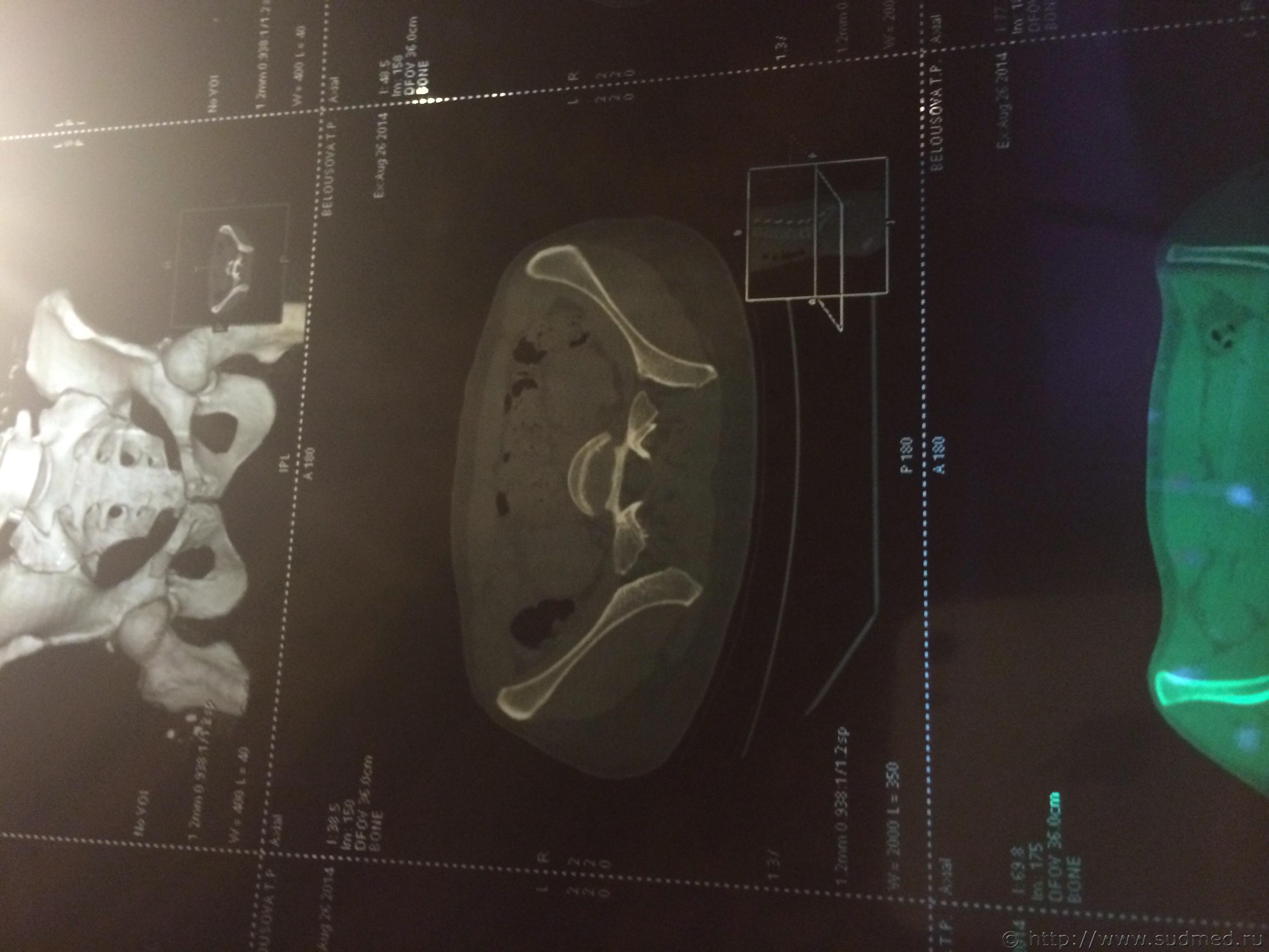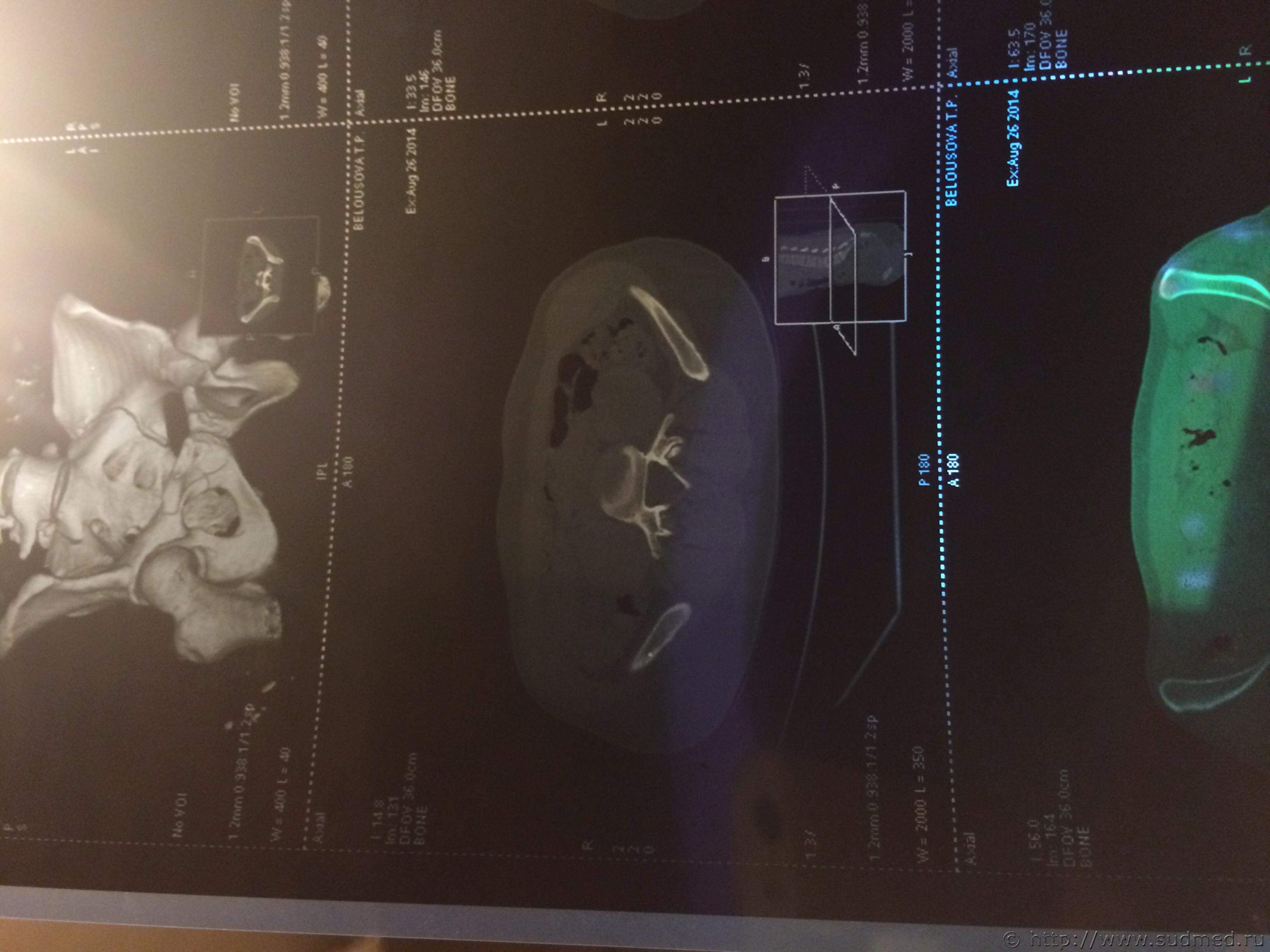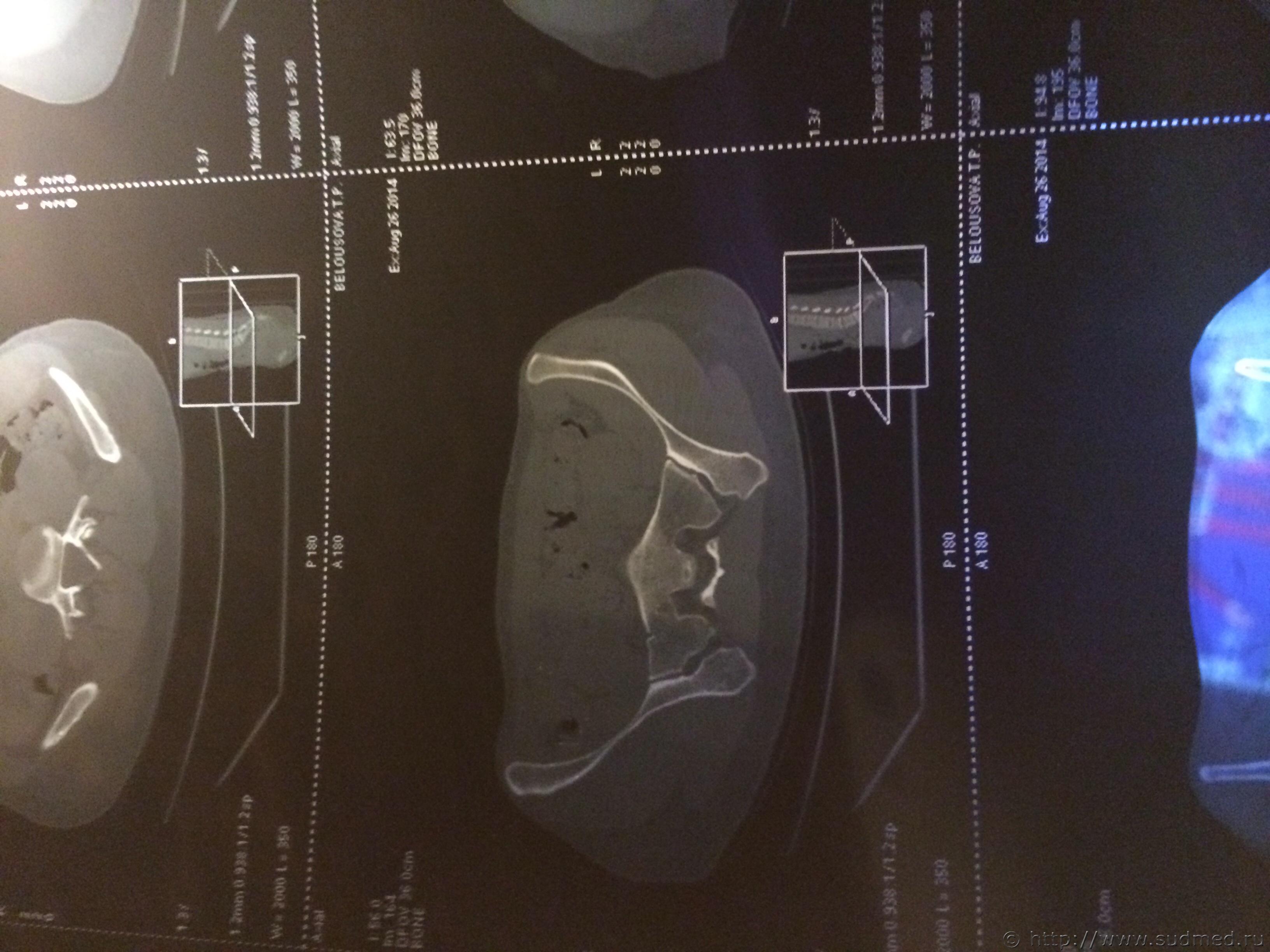 Цитата стоит АВФ, была операция под общим наркозом. Трудоспособность утрачена неизвестно на какое время. Это на степень тяжести вреда здоровью никак не влияет. Цитата Закрытый трансфораментальный перелом правой боковой массы крестца, перелом ветвей лонной и седалищной костей. Если есть полный вертикальный перелом крестца - тяжкий вред, иначе - вред средней тяжести. Дождитесь результатов экспертизы, при проведении которой эксперт (при необходимости с участием эксперта-рентгенолога) исследует все рентгенограммы, компьютерные томограммы таза, тогда будет отчетливо понятен характер костной травмы таза и можно будет достоверно оценить степень тяжести вреда здоровью. Сейчас (по представленному Вами диагнозу) это можно только предполагать. Если у Вас есть рентгенограммы и КТ (желательно - с их описаниями рентгенологом) - можете выложить их здесь (с соблюдением п.7.3.1 Правил Форума судебных медиков). Возможно, получится однозначно ответить на Ваш вопрос. Если нет, то тему закрываю, так как что-то еще обсуждать бессмысленно: мы не ясновидящие и не волшебники, исполняющие желания. |