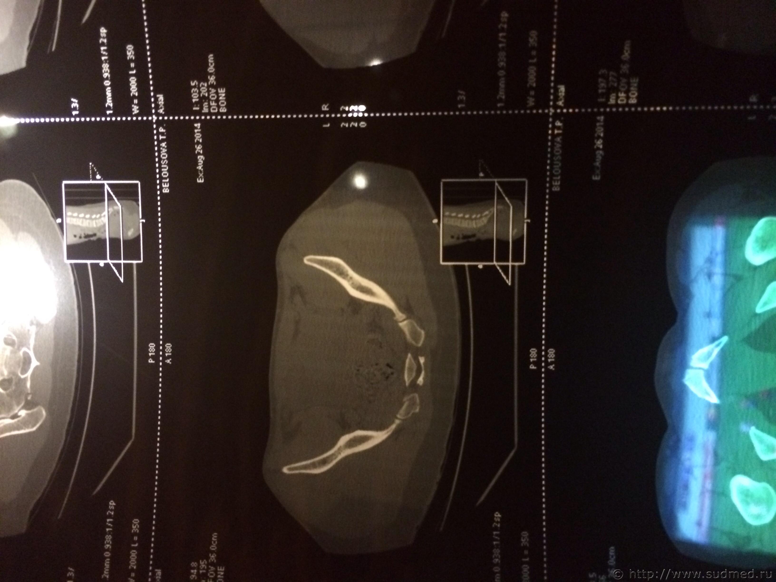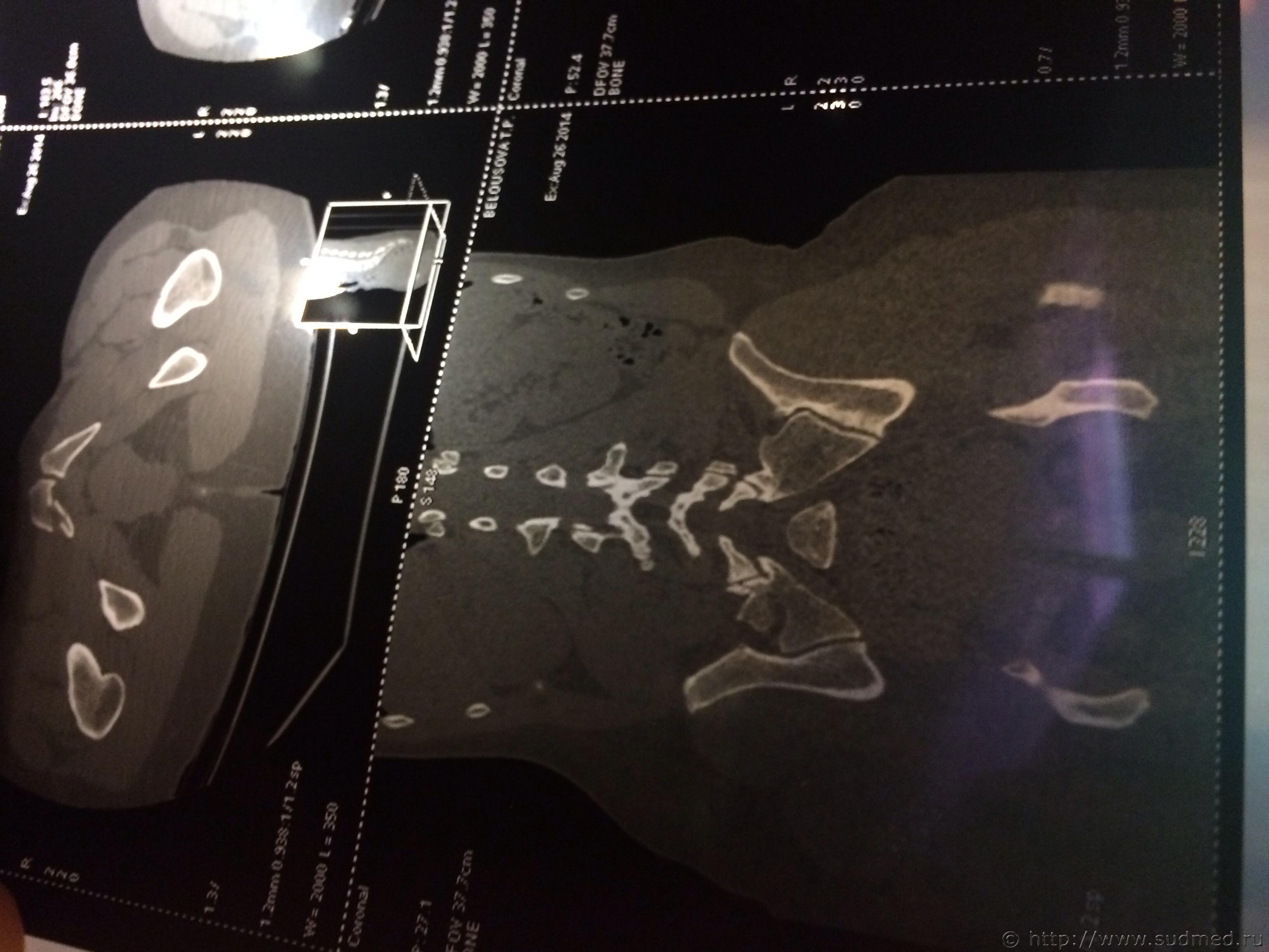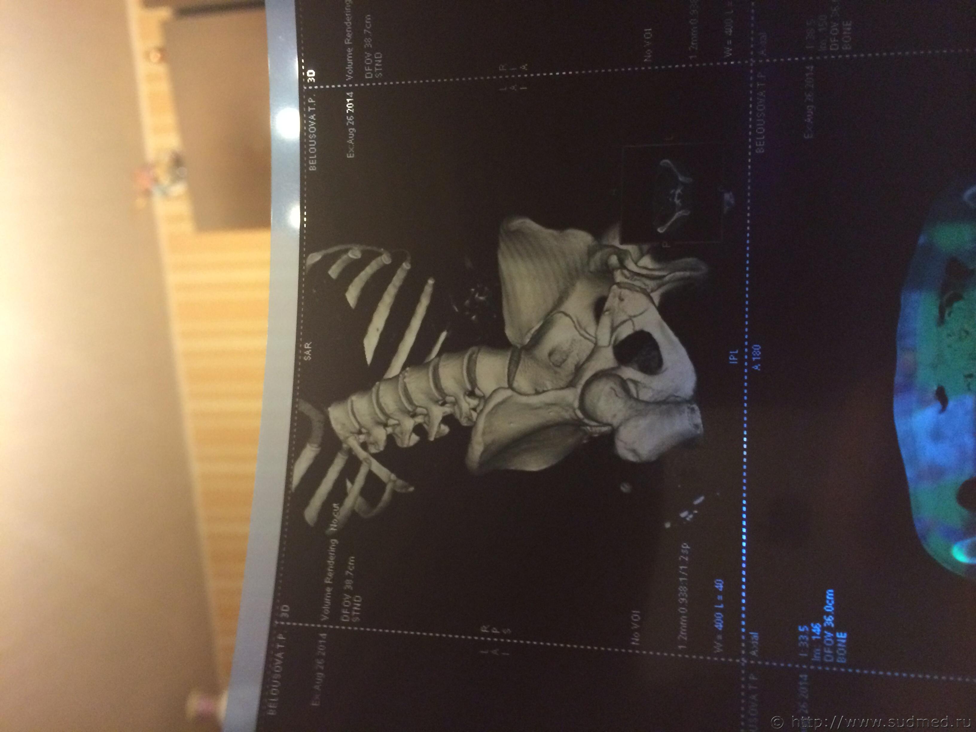 Цитата стоит АВФ, была операция под общим наркозом. Трудоспособность утрачена неизвестно на какое время. Это на степень тяжести вреда здоровью никак не влияет. Цитата Закрытый трансфораментальный перелом правой боковой массы крестца, перелом ветвей лонной и седалищной костей. Если есть полный вертикальный перелом крестца - тяжкий вред, иначе - вред средней тяжести. Дождитесь результатов экспертизы, при проведении которой эксперт (при необходимости с участием эксперта-рентгенолога) исследует все рентгенограммы, компьютерные томограммы таза, тогда будет отчетливо понятен характер костной травмы таза и можно будет достоверно оценить степень тяжести вреда здоровью. Сейчас (по представленному Вами диагнозу) это можно только предполагать. Если у Вас есть рентгенограммы и КТ (желательно - с их описаниями рентгенологом) - можете выложить их здесь (с соблюдением п.7.3.1 Правил Форума судебных медиков). Возможно, получится однозначно ответить на Ваш вопрос. Если нет, то тему закрываю, так как что-то еще обсуждать бессмысленно: мы не ясновидящие и не волшебники, исполняющие желания. |