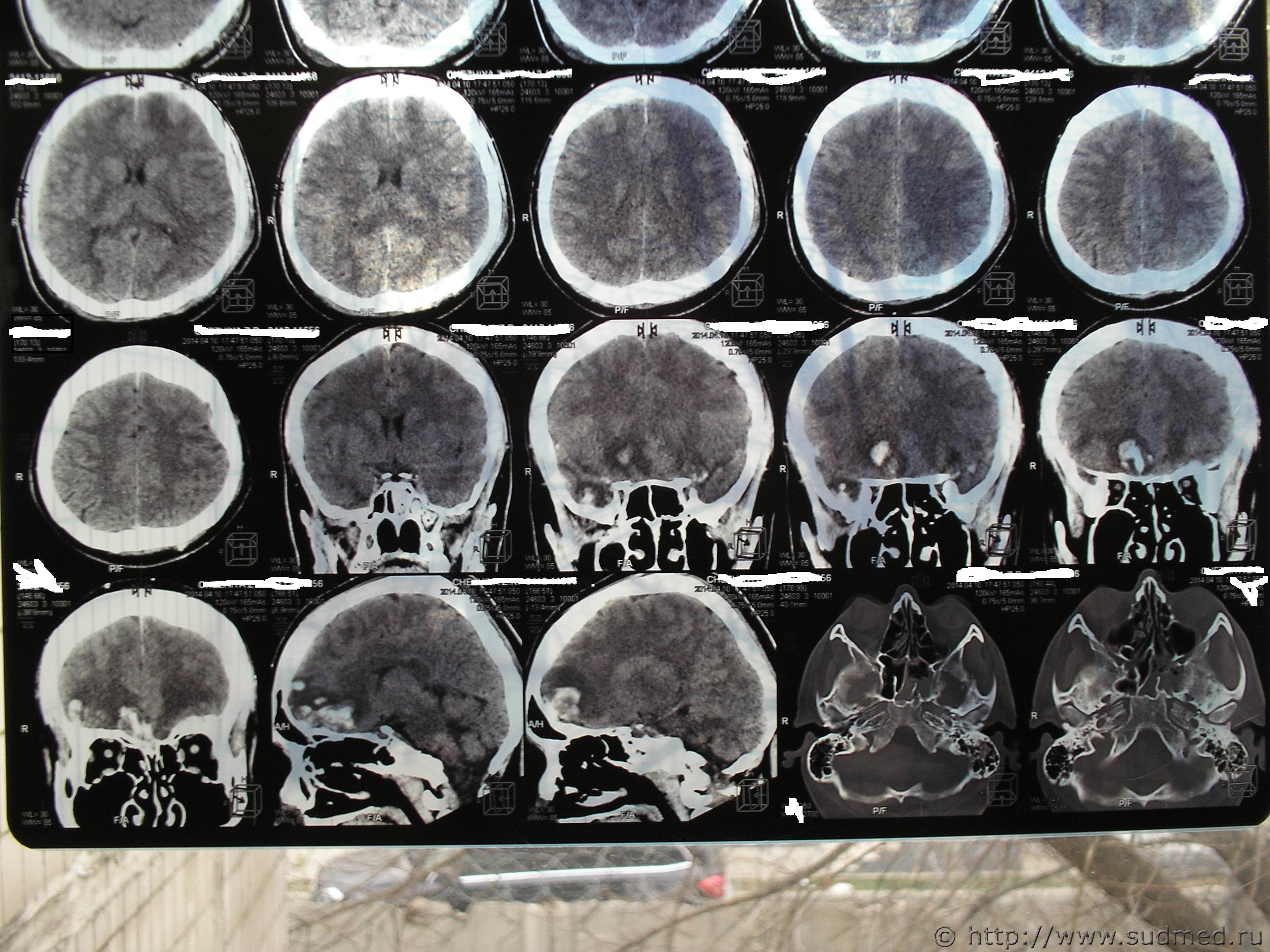 Нужно знать, что видно на данных снимках КТ. Спорная экспертиза. Делали по копии мед. карты и по этим снимкам. Снимки на руках у потерпевшего, еле достали. Исчез рентген потерпевшего из приемного отделения, осталась только запись в карте. Повреждений свода черепа не обнаружено. Диагноз в обвинении - Комплексный перелом свода и основания черепа, отоликворея слеа, УГМ средней тяжести, субарахноидальное кровоизлияние, пневмоцефалия, алкогольное опьянение, ушибленная рана на затылке. Потерпевший выписан из больницы на 18й день, более нигде не наблюдался. Говорит лечится в частном порядке. Мнение эксперта-рентгенолога - перелом клиновидной кости давностью не более 6-8 недель. А снимки сделаны в первые сутки. Есть еще пара снимков, но такого же качества и, как написано в экспертизе дополнительной информации не содержат. Очень нужно знать, что на снимках, независимое мнение. Есть еще снимок МРТ через три месяца. Информацию на дисках не предоставили.