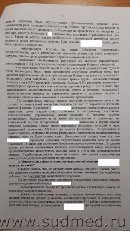 Уважаемые участники форума, судебно-медицинские эксперты! Необходима Ваша консультативная помощь в отношении оценки комиссионной СМЭ по материалам уголовного дела, возбужденного по статье 109 ч.2 УК РФ в отношении врача хирурга. Общий смысл в том, что пациент получивший производственную травму, выпавший из окна погрузчика с 6 метровой высоты и ударившийся головой о металлический ковш, поступает в лечебное учреждение, где ему оказывается медицинская помощь, в том числе и первичная хирургическая обработка раны головы. Больной умирает через 13, 5 часов после поступления в лечебное учреждение. Государственный судебно-медицинский эксперт производивший вскрытие трупа, и дававший заключение в том числе и на основании судебно-гистологического заключения и оценки медицинской документации, указывает, что смерть наступила от сочетанной тупой травмы головы с переломом костей свода и основания черепа, сопровождавшейся отеком и дислокацией головного мозга. Он же квалифицирует указанные повреждения, как ТЯЖКИЙ вред здоровью по признаку опасного для жизни, который "стоит в прямой причинной связи с наступлением смерти потерпевшего".