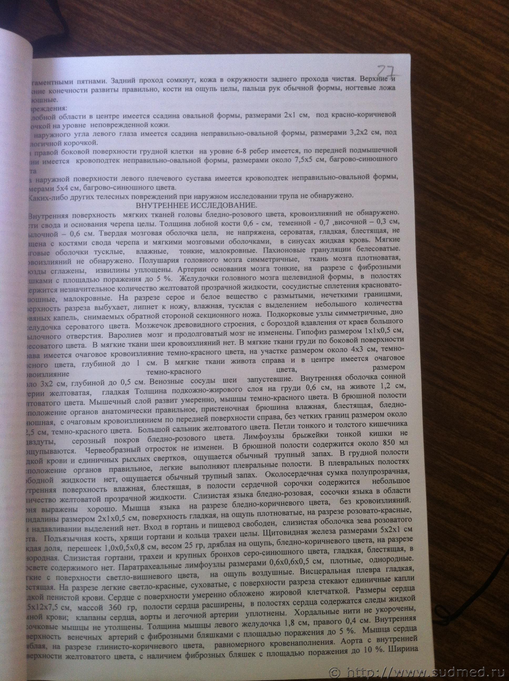 Обстоятельства дела заключены в том,чтобы несколько инцидентов избиение, при первом якобы были нанесены удары сверху вниз лежащему на спине мужчине,во втором инциденте были нанесены прямые удары в правое подреберье,в 3 инциденте неизвестно. Обнаружен труп спустя от первого инцидента через 32 часа, время смерти не установлено. Вот суд-медэкспертиза