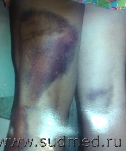 Цитата Что значит данных за гематому не обнаружено? Это значит, что характерных медицинских признаков гематомы врачами лечебного учреждения и экспертом не обнаружено. Слово "гематома" употреблено ими терминологически некорректно. В расширительном смысле. То, что ими описано, правильно называется "кровоподтек". В практическом смысле, можно не придираться к слову "гематома" в судебно-медицинском диагнозе - само по себе это слово не дает оснований для оценки повреждения как легкий вред здоровью. Цитата гематома - это объемное скопление крови, подлежит удалению. Здесь виден только кровоподтек. Строго говоря, на фото видно багрово-синее пятно. Не являющееся предметом для судебно-медицинского обсуждения. По фото судебно-медицинские экспертизы не делаются. Судя по написанному в представленных нам текстах, ничего вскрывать не требовалось, ничего не вскрывалось, кровь из полости какой-нибудь гематомы не удалялась и т.д. Цитата рубец,гемосидероз, гиперпигментация Это - не повреждения. Рубец - неизвестно, откуда взялся, но к данной травме он не имеет ношения, судя по записям врачей лечебного учреждения и по результатам осмотра экспертом: раны не было, никакая гематома хирургически или самостоятельно не вскрывалась. Гемосидероз, гиперпигментация могут более или менее длительное время быть заметны на месте, где был кровоподтек. Само по себе такое бледно-коричневатое пятно, исчезающее за несколько недель (или за несколько лет - это зависит от множества факторов), не нарушает ни какие функции организма и т.д., не свидетельствует о расстройстве здоровья, утрете или ограничении трудоспособности и т.п. Наверное, максимум, что реально можно: утверждать в суде, что этот косметический дефект на ноге вызывает моральные страдания и т.п., т.е. требовать за это какую-то материальную компенсацию. Если это пятно сохранится к моменту принятия решения судом, если оно как-то хорошо заметно, если, по мнению суда, оно реально влияет на какие-то социально-значимые аспекты жизни человека. Все это - на усмотрение суда. Предвосхищать судебное решение не берусь. Вероятно, суд не сможет разглядеть это пятно даже под тонкими прозрачными колготками, надетыми на пострадавшей. Вероятно, пострадавшая работает не моделью или в т.п., в которой идеальное состояние кожи - основа профессиональной деятельности. Обговорите это с Вашим адвокатом, он найдет еще добрый десяток аргументов, позволяющих суду отказать в иске о компенсации за причинение косметического дефекта или сводящих возможный иск к смехотворной сумме. Ответы на вопросы даны. Тема закрыта. |