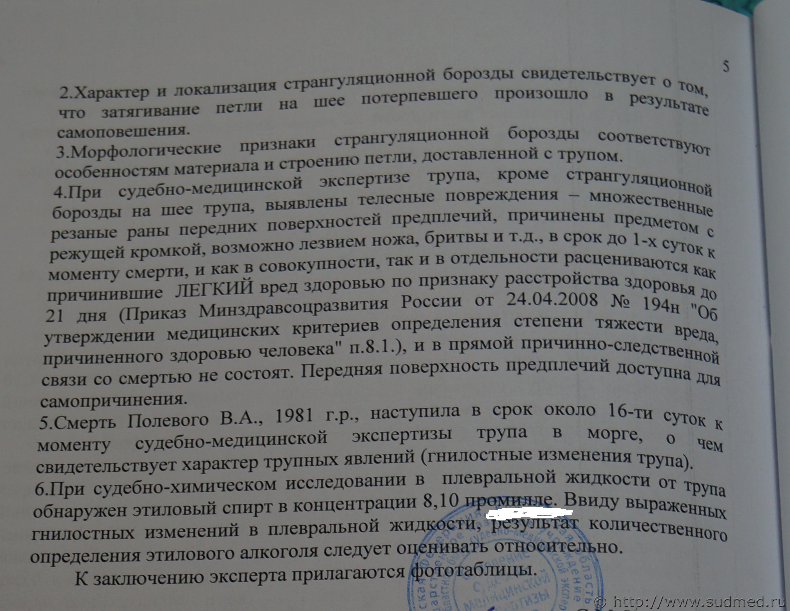 Помощь по экспертизе трупа, удушение,утопление или смерть от потери крови |