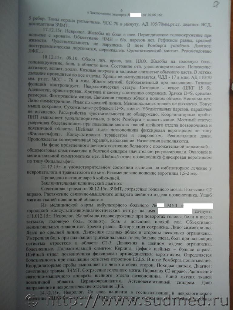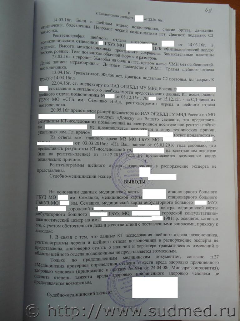 Ответ уже дан: нет объективных медицинских данных причиненного вреда, а именно подвывиха С2. Нарушен приказ 346н: 29. Заключение эксперта в обязательном порядке содержит выводы по поставленным вопросам и их обоснование. Во второй экспертизе выводы ничем объективным не обоснованы. Спасибо Антон за ссылку на статью,сам бы долго искал) |