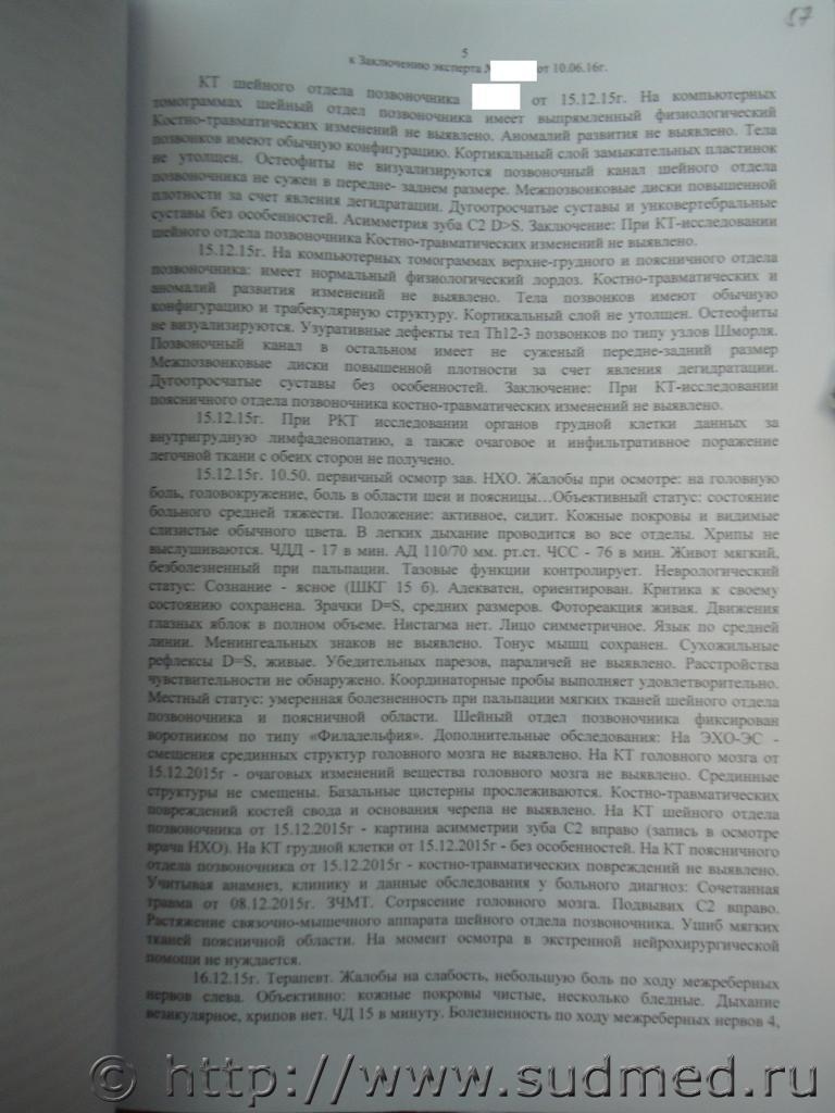 Считаю выводы второй экспертизы необоснованными объективными медицинскими данными из исследовательской части заключения. Объективных признаков травмы области шеи не обнаружено: КТ эксперт не исследовал, факт наличия подвывиха С2 экспертом не верифицирован, его травматическая или нетравматическая (вариант развития, особенности укладки) природа не определена; жалобы на боли, болезненность в шее - не являются объективным симптомом, само по себе наложение фиксирующего воротника на шею не подтверждает травму.