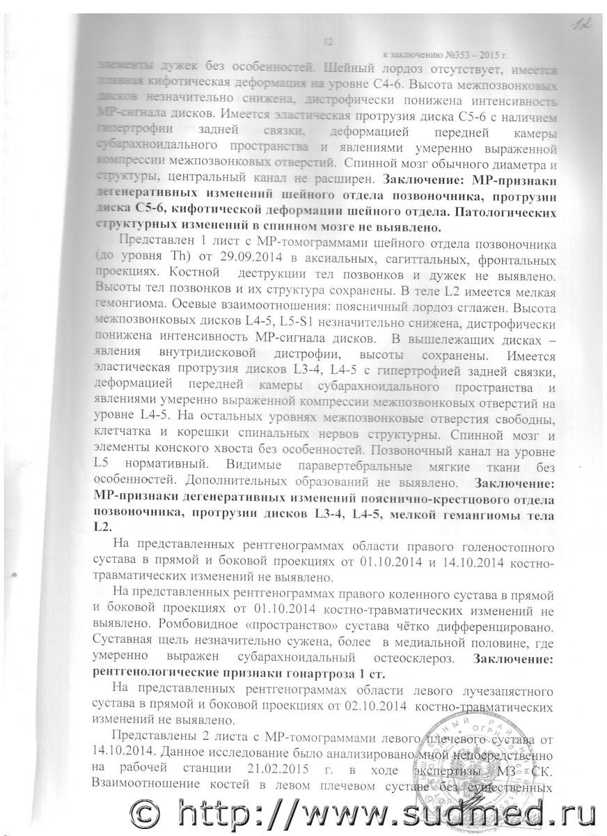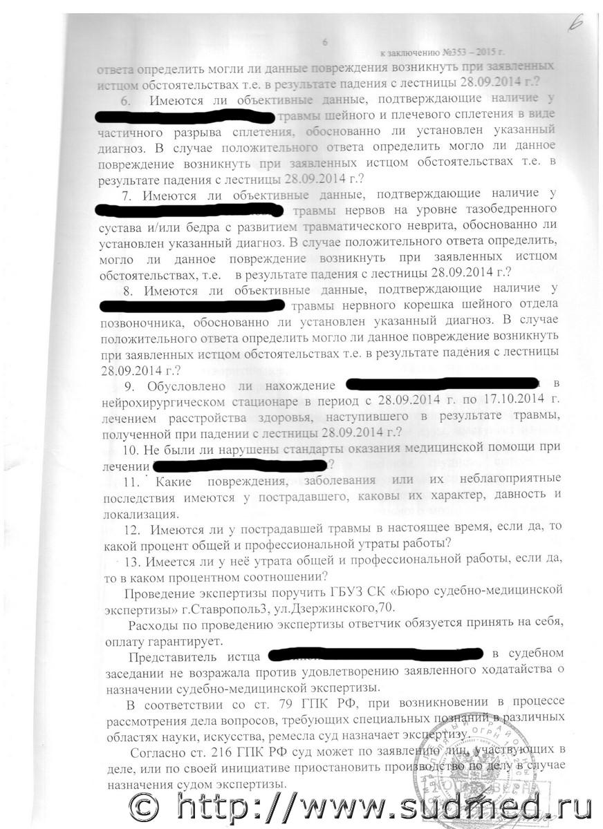 1. Экспертизу должны делать только сотрудники Бюро СМЭ. О привлечении иных спец. должно быть подано ходатайство. В этом ходатайстве должны быть указаны конкретные ФИО привлекаемых специалистов или общая форма типа "прошу разрешить привлечь сторонних врачей"? 2. Согласно пункта 66 Приказа № 346н эксперт должен установить личность обследуемого, о чем делается запись в заключении. Отсутствие таковой записи может служить основанием для признания экспертизы не действительной 3. Согласно пункта 29 Приказа № 346н выводы должны содержать оптимальные, краткие, четкие и недвусмысленные ответы на все поставленные вопросы. На экспертизу было поставлено 13 вопросов, в выводах ответы представлены в виде 10 пунктов, часть вопросов вообще не раскрыто. Допустимо? 4. По диагнозам. Сотрясение головного мозга - можно ли установить объективно (т.е. подтвердить рентгеном и МРТ), насколько я понимаю диагноз устанавливается только на основании оценки состояния больного. То же самое и про ушиб головного мозга. Верно ли установлен диагноз? И почему он противоречит представленным медицинским документам? 5. Вывих / растяжение голеностопного сустава. Можно ли подтвердить объективно? Верно ли установлен диагноз? 6. Почему отбросили ушибы головы и других частей тела ведь они были зафиксированы при первичном обращении. Понятно, что на момент освидетельствования уже прошли. 7. Травма шейного и плечевого сплетения. Можно ли установить что повреждение суставной губы левого плечевого сустава застарелое повреждение, а не образовавшиеся в результате травмы? Верен ли диагноз? 8. Травма нервов тазобедренного сустава. Выявленная сенсорная нейропатия не связана с травмой. Насколько обоснован такой диагноз? 9. Травма нервного корешка шейного отдела позвоночника. Выявлены дегенеративные изменения, протрузия дисков шейного отдела. Могут ли это быть последствия травмы? Верно ли установлен диагноз? 10. Не были ли нарушены стандарты оказания мед. помощи при лечении. К чему вопрос этот вообще ставился? И что это за стандарты? Сама экспертиза |