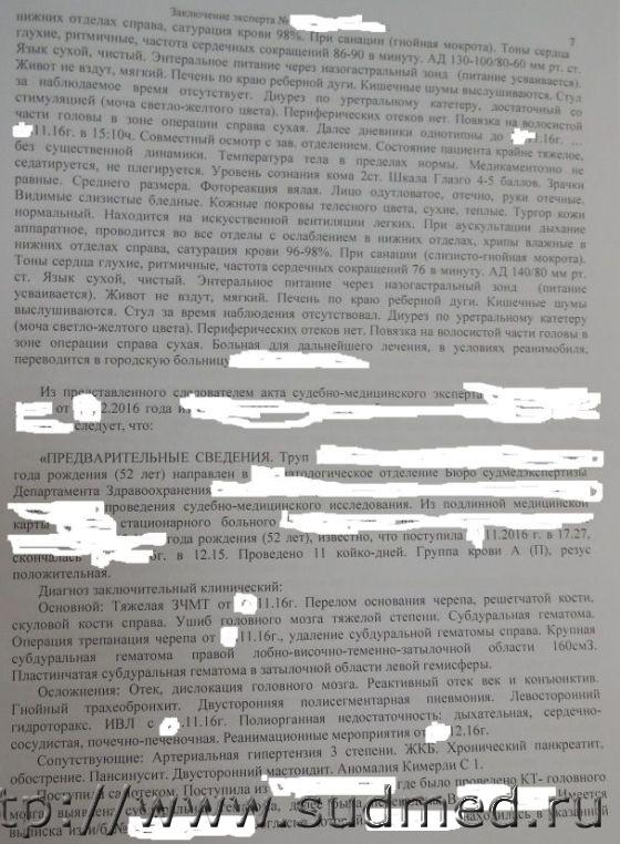Медик и Anton , спасибо за ответы. По датам: 5.11.2016-получена травма, 6.11-поступила в реанимацию, 8.11- трепанация, 21.11-переведена в другую больницу с нейрохирургией, 2.12- смерть. И ещё один вопрос: Из-за чего могла образоваться повторная гематома? Нейрохирург после операции сказал: Операция прошла успешно, я всё вычистил, ждите улучшения......