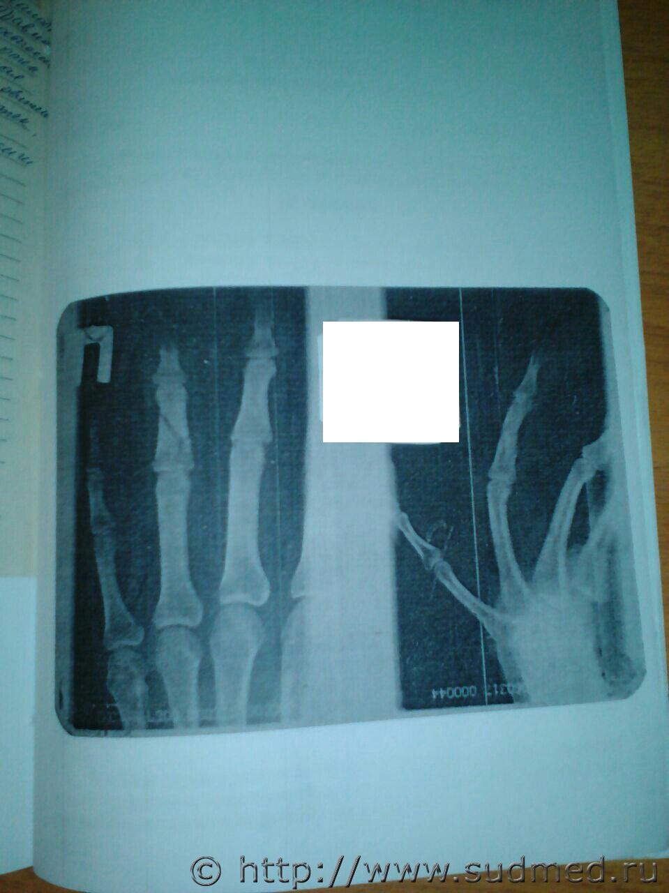 1.оскольчатый внутрисуставной перелом проксимального эпифиза, верхней и средней третей диафиза средней фаланги четвертого пальца правой кисти с допустимым (незначительным) угловым и ротационным смещением отломков. 2-5. Образование такого перелома нехарактерно для насильственного разгибания или кручения пальца. Наиболее типично формирование такого перелома от действия повреждающей силы по оси кости, что могло быть при сильном и резком ударе выпрямленным пальцем или при ударе по кончику выпрямленного пальца вдоль его оси. Маловероятно, но не исклюдчается полностью, получение этого перелома от удара по его области. Спасибо за ответ! Подскажите, пожалуйста, после получения нами всех необходимых документов из материалов дела, возможно ли получить от Вас официальное СМ заключение. Если да, то на каких условиях. И что необходимо для этого. |