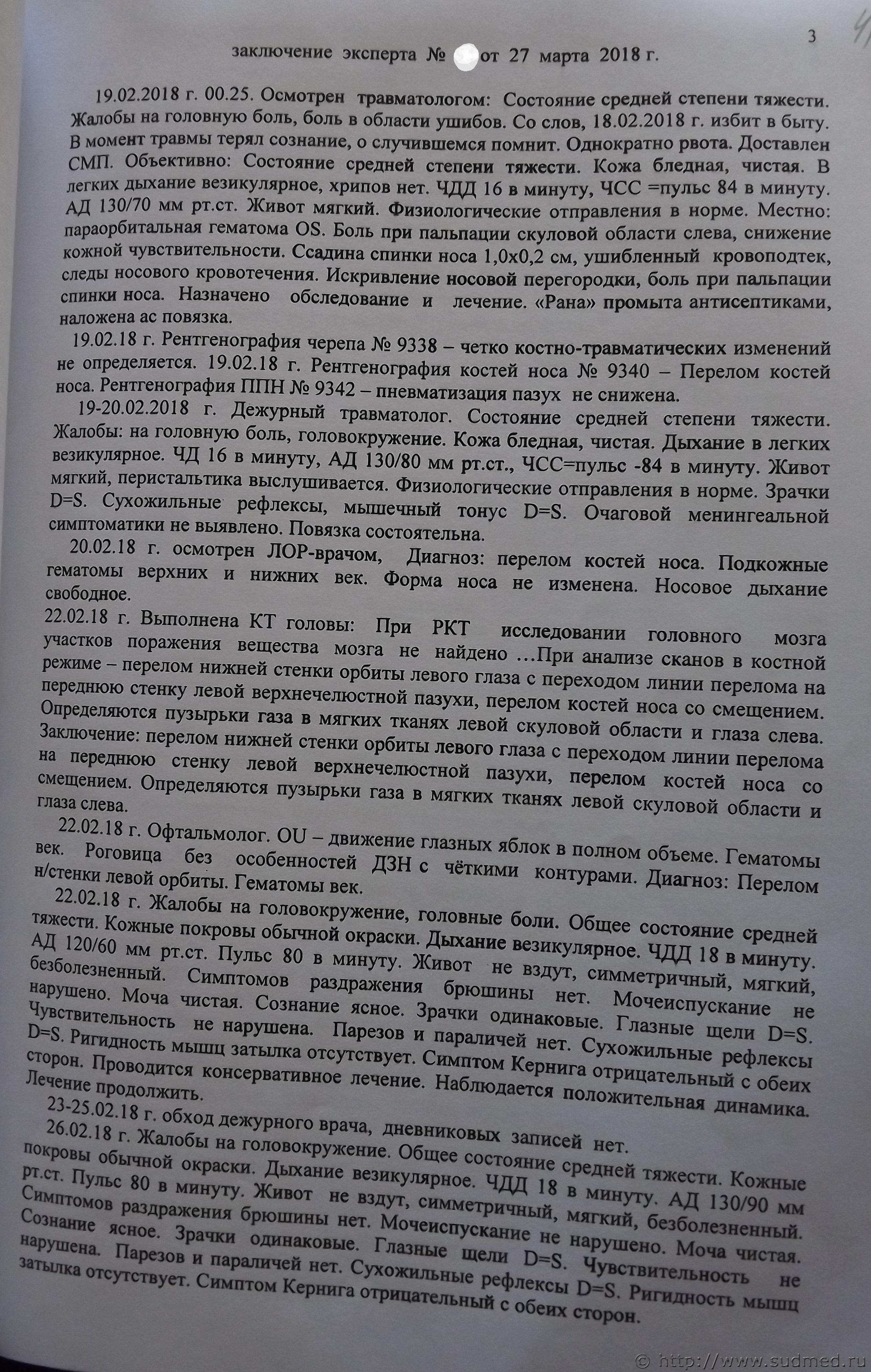 Эксперт исходил не из характера костной травмы, а из записей в амбулаторной карте, где не описано нарушение функций, обусловленных переломом. Однако заживление подобных повреждений требует длительного времени до восстановления анатомической целости костей, более 3 недель. Можно и нужно ходатайствовать о назначении повторной экспертизы. Или даже комиссионной с привлечением челюстно-лицевого хирурга (травматолога), рентгенолога. |