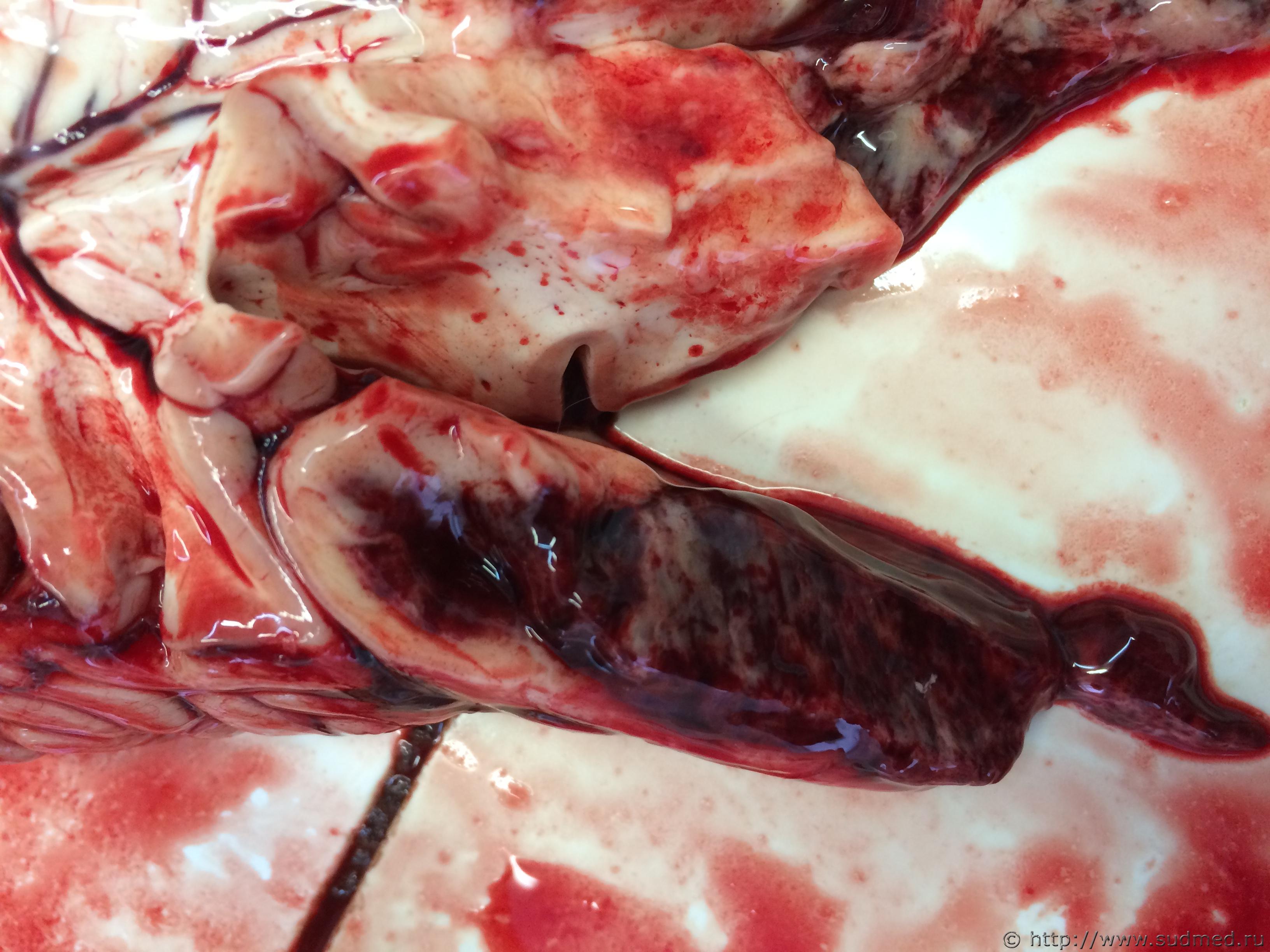 Левая затылочная доля Правая затылочная доля Учитывая локализацию,количество и макроскопич.изменения,не исключил бы кардиоэмболический смешанный инфаркт ГМ. Р.S.Поискать бы болезни сердца. Кстати,а возраст-то какой ? Сосуды головного мозга чистые, эластичные. Единичные бляшки до 10-20%, тромбов не обнаружено Атеротромботический инфаркт ГМ исключаем. Тромбы до и в такой каше - можете не увидеть. |