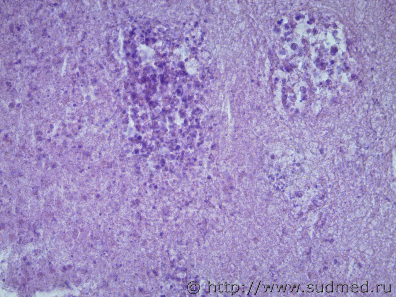 Добрый день! Ув. коллеги, нужна ваша помощь. Головной мозг жен. 28 лет. 1 год в коме после остановки сердца в послеоперационном периоде. Под микроскопом тотальный некроз головного мозга. Грибковый энцефалит?