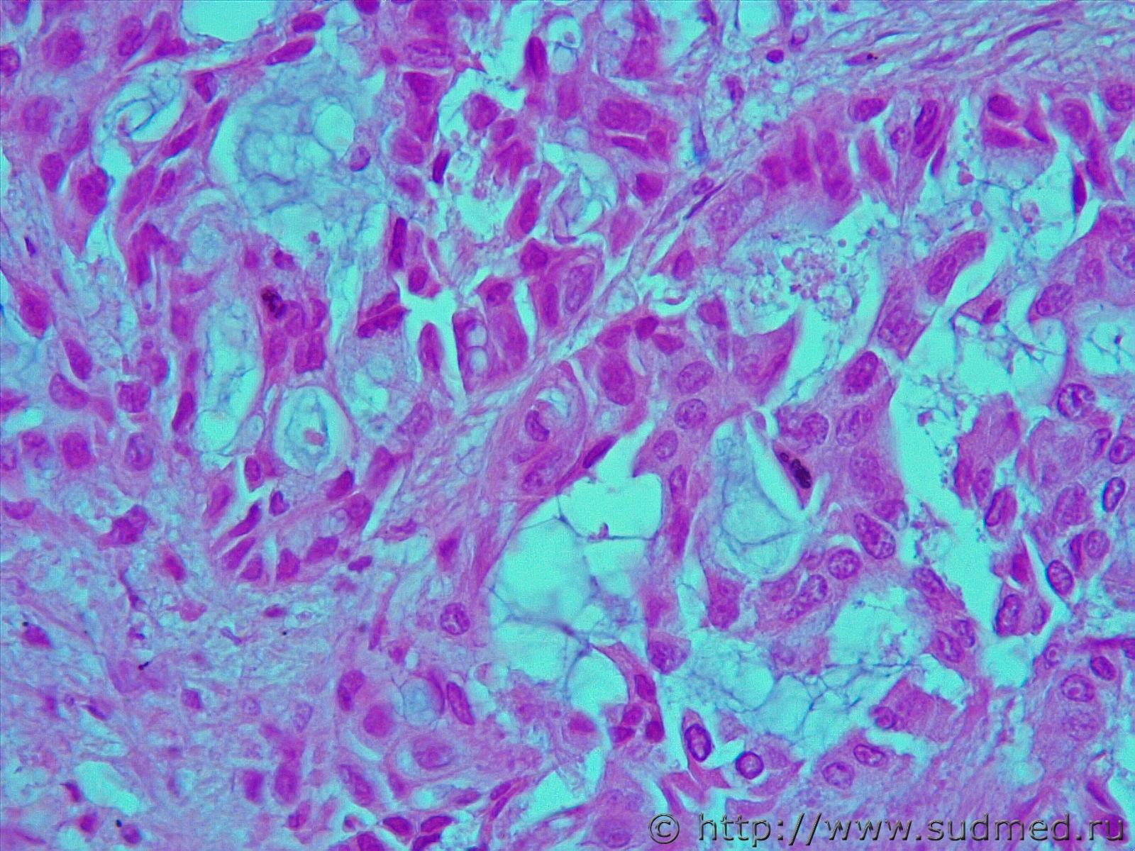 Могу лишь предположить н/д аденокарциному со слизеобразованием