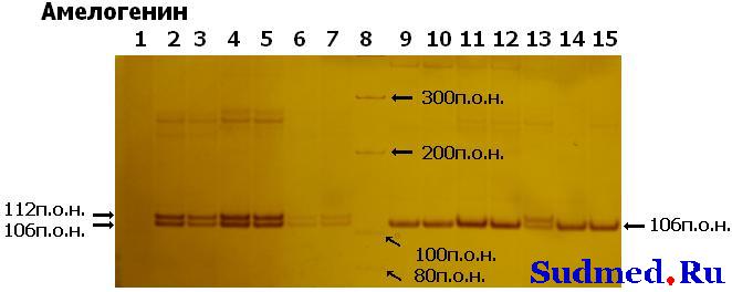 Доброго времени суток! Хочу кратко изложить возможности молекулярно-генетической экспертизы при установлении половой принадлежности различных объектов и её преимущества перед традиционными цитологическими методами. Какие биологические объекты могут быть исследованы: - следы крови, в том числе подвергшиеся гнилостному разложению, замытые и мельчайшие брызги; - следы слюны (окурки сигарет, почтовые марки и конверты, шапки-маски, жевательные резинки); - следы пота на одежде и обуви, рукоятках различных предметов; - следы спермы; - различные ткани и органы человека, в том числе гистологические препараты; - кости, зубы, ногти; - волосы, как корневая часть, так и стержень. Многое, конечно, зависит от материала, степени его сохранности, но по сотням экспертиз в год выход (+) около 95-98%. Цитология даёт в лучшем случае 5-10% положительных результатов. Используются участки на X- и Y-хромосомах человека гена амелогенина. Мы применяем наиболее короткий - 106 и 112 пар оснований нуклеотидов. Пример установления половой принадлежности ряда объектов приводится. Две полосы - мужской генетический пол, одна полоса (106 пар оснований нуклеотидов) - женский пол. Мы применяем установление половой принадлежности, как целостную экспертизу, довольно часто. И это в большой степени повышает качество экспертиз выходящих из бюро судебно-медицинской экспертизы. Знаю, что в других местах, где есть генетика - такие экспертизы редко проводятся, не на потоке. Что этому мешает? Если возникнут вопросы по самой методике, по алгоритму проведения такой экспертизы и по тому, как максимально удешевить такое исследование - готов поделиться подробностями. Здравствуйте, Ув. Зубр. Напишите, пожалуйста, что за участки ДНК размером 80, 100, 200 и 300 п.о.н. видны у Вас в ПААГе? У меня тоже подобные отрезки имели место быть. |