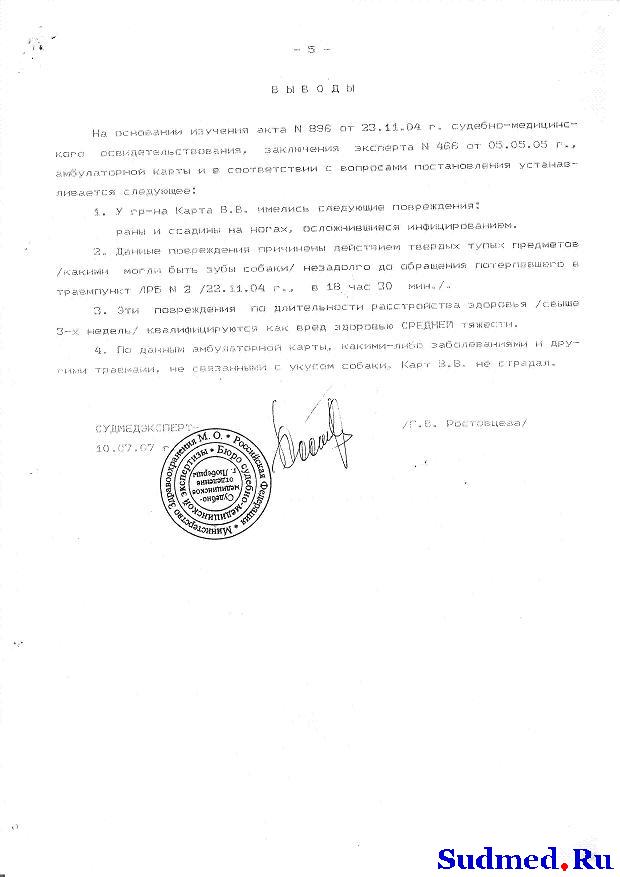И вот вроде бы всё. Но через два года прокурор поднялся по служебной лестнице вверх. Пришёл новый прокурор и по непонятным мне причинам возбудил дело. Теперь пострадавший требует от меня 25000 долларов. И вот судмедэксперт К..., которая делала все три экспертизы, умерла, а так же умерла одна из моих свидетелей и моя собака в возрасте 15 лет тоже умерла. 1. Человек получил две укушенные ссадины бёдер, чем подтвердил запись в травмпункте. 2. На следующий день делает судмедэкспертизу, которая установила, что для заживления ссадин требуется менее 21 дня, поэтому нанесён лёгкий вред здоровью. 3. Через 14 дней он первый раз обратился в поликлинику с отёком, гиперемия в области ссадин. 4. Через 18 дней после первого обращения в амбулаторной карте написано: - Воспалительных явлений нет, рубцы чистые. 5. Через месяц и шесть дней он идёт делать повторную судмедэкспертизу, которая подтвердила, что причинен вред здоровью лёгкой тяжести. 6. На следующий день после получения результатов заключения судмедэкспертизы он обращается в поликлинику с жалобами на наличие инфильтрата на правом бедре. Местно: по передней поверхности верхней трети бедра рубец / укушенная ссадина два месяца и пять дней назад /, инфильтрат до 2,5 см в центре с флюктуацией. Осумкованная гематома верхней трети правого бедра. Под местной анестезией вскрыт инфильтрат, опорожнена гематома. Резиновый выпускник. Асептическая повязка. 7. Через неделю появилась запись в амбулаторной карте: - Лечился самостоятельно, воспалительных явлений в области ссадины нет. 8. Спустя четыре месяца после последней судмедэкспертизы, эта же судмедэксперт даёт заключение, что эти же ссадины причинили средний вред здоровью. |