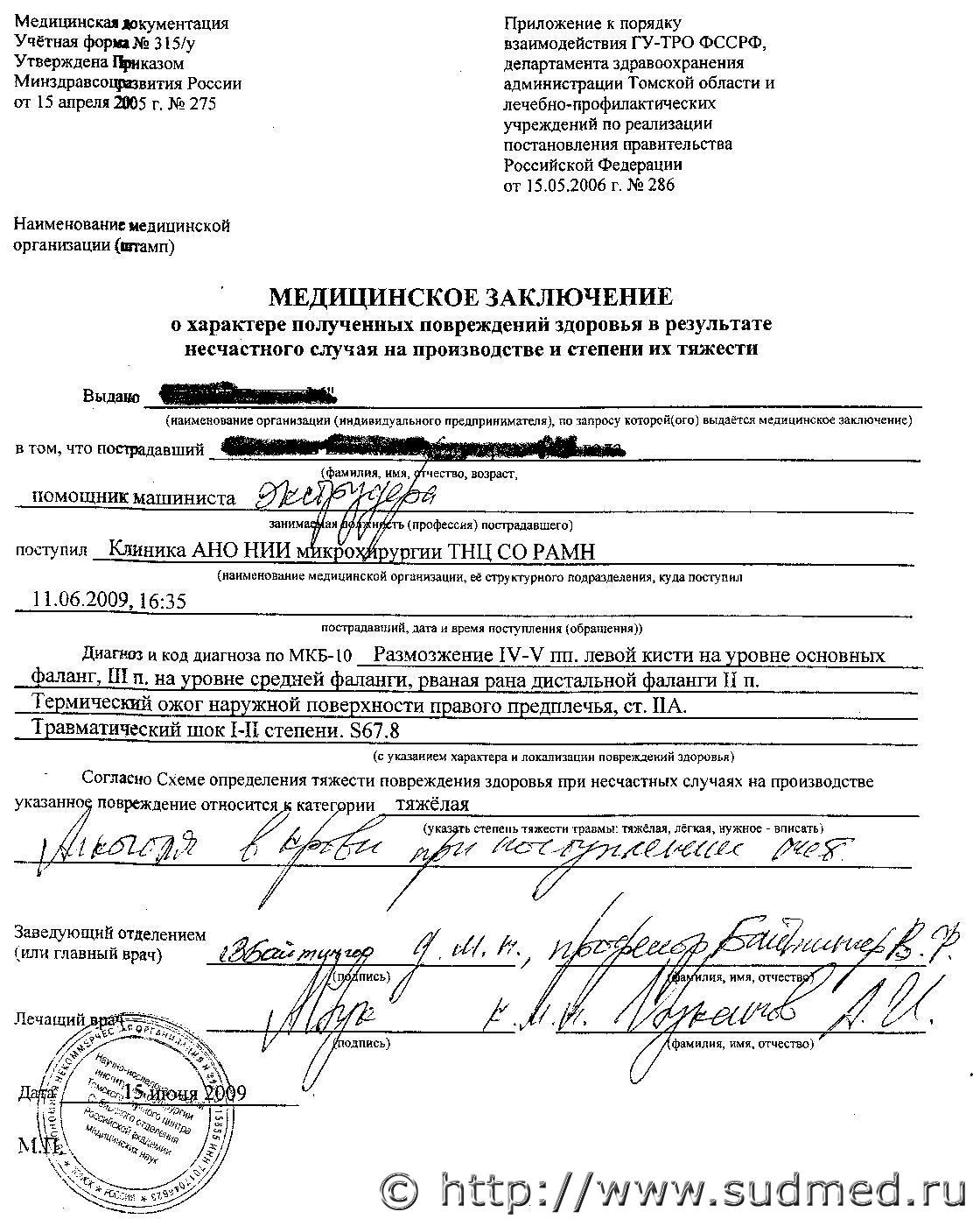 Немного предыстории: на предприятии произошел несчастный случай с работником при выполнении своих обязанностей-запуск машины. В результате лишился пару пальцев. Медицинское заключение следующее: