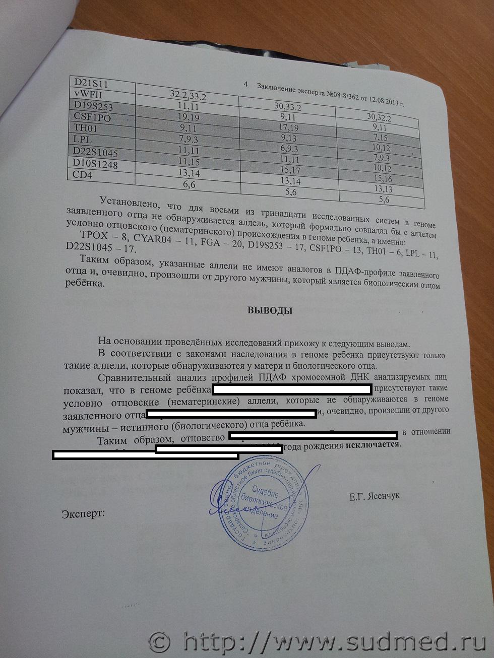 Скажите пожалуйста:1.я полностью уверенна что мой бывший мч отец моего ребенка результат судебной мед экспертизы это опровергает. может ли быть результат экспертизы без определения в ней пола ребенка, без процентного соотношения, и без указания групп крови?