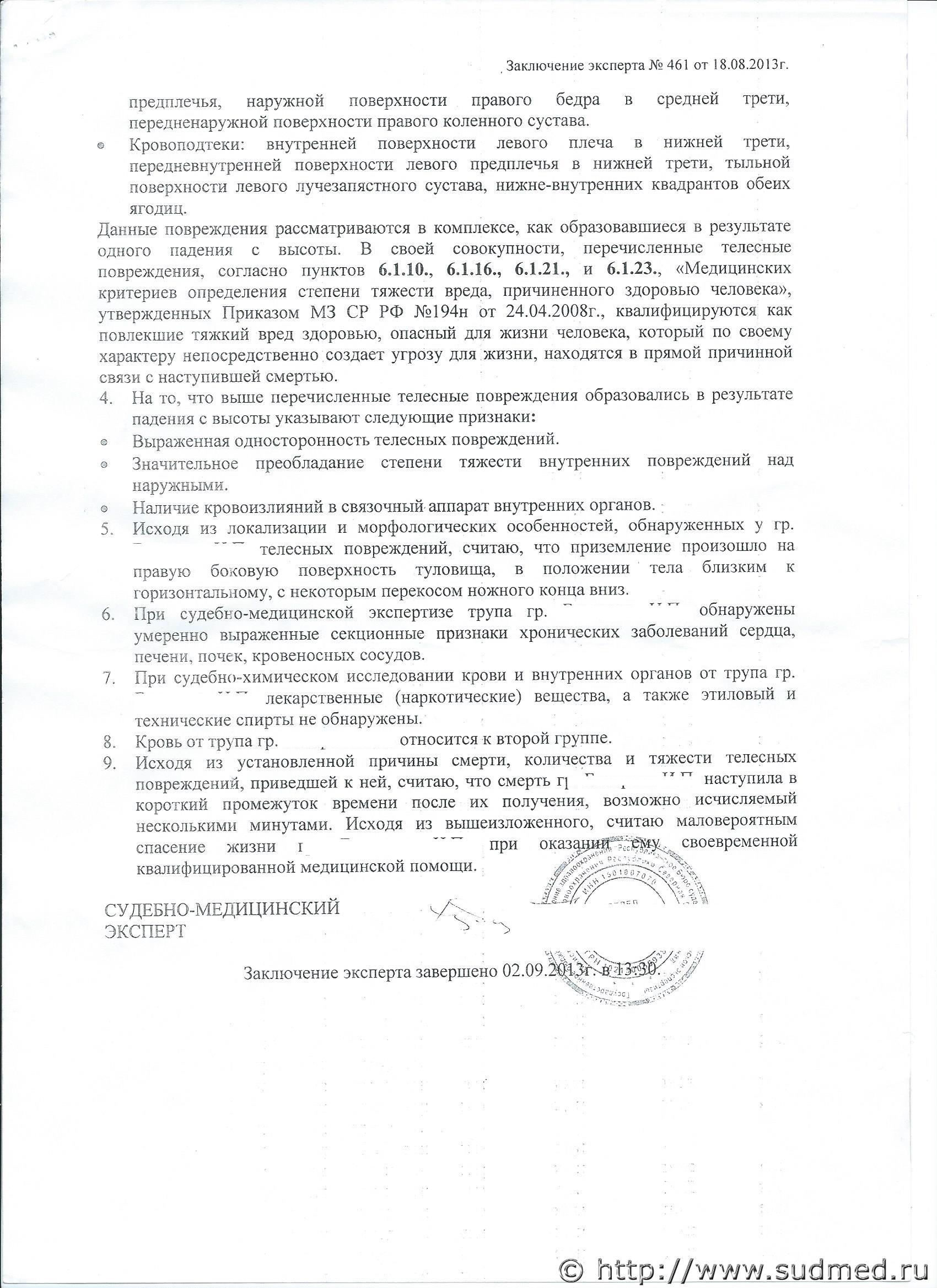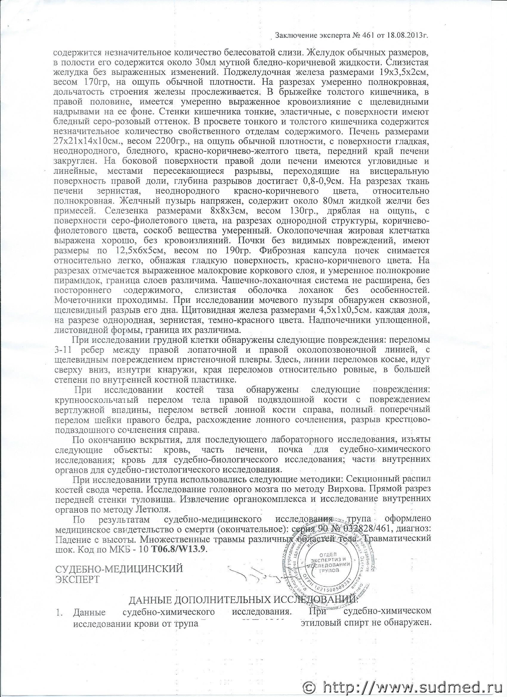 Здравствуйте. Нужна помощь. Было выдано заключение экспертизы. У меня вопрос. Все ли травмы получены так, как там указано.Почему я обнаружила труп на левом боку, если в заключении написано, что упал на правый бок. И еще вопрос. Сколько времени необходимо для того, чтоб в крови не было следов алкоголя, если человек много пил, но перед смертью 3-4 дня не пил. Да и вообще интересно мнение экспертов, может есть какие -то моменты, которые вызывают сомнение. Заранее благодарю.