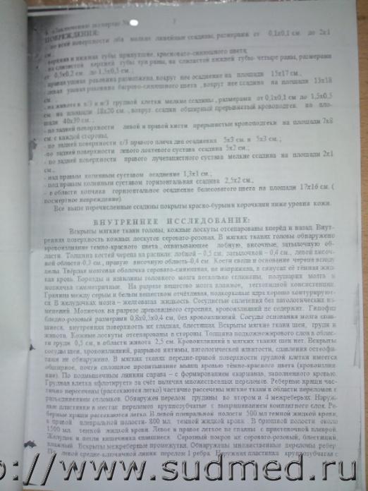 Нет чёткости.Читается не всё. Что-либо известно из обстоятельств дела? скажите фото какого листа не читаемо, попробую изменить. труп обнаружен на пустыре, его туда переместили. есть следы обуви и транспортного средства, от следов ТС к трупу по снегу имеется след волочения. |