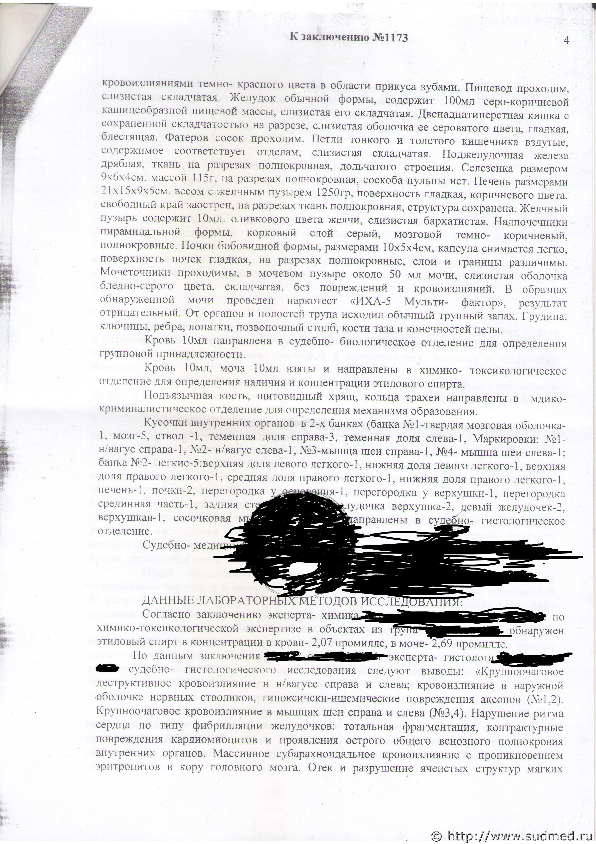 Помогите разобраться от чего произошло кровоизлияние в мозг, от удара в гортань или от удара в голову. ____________ |