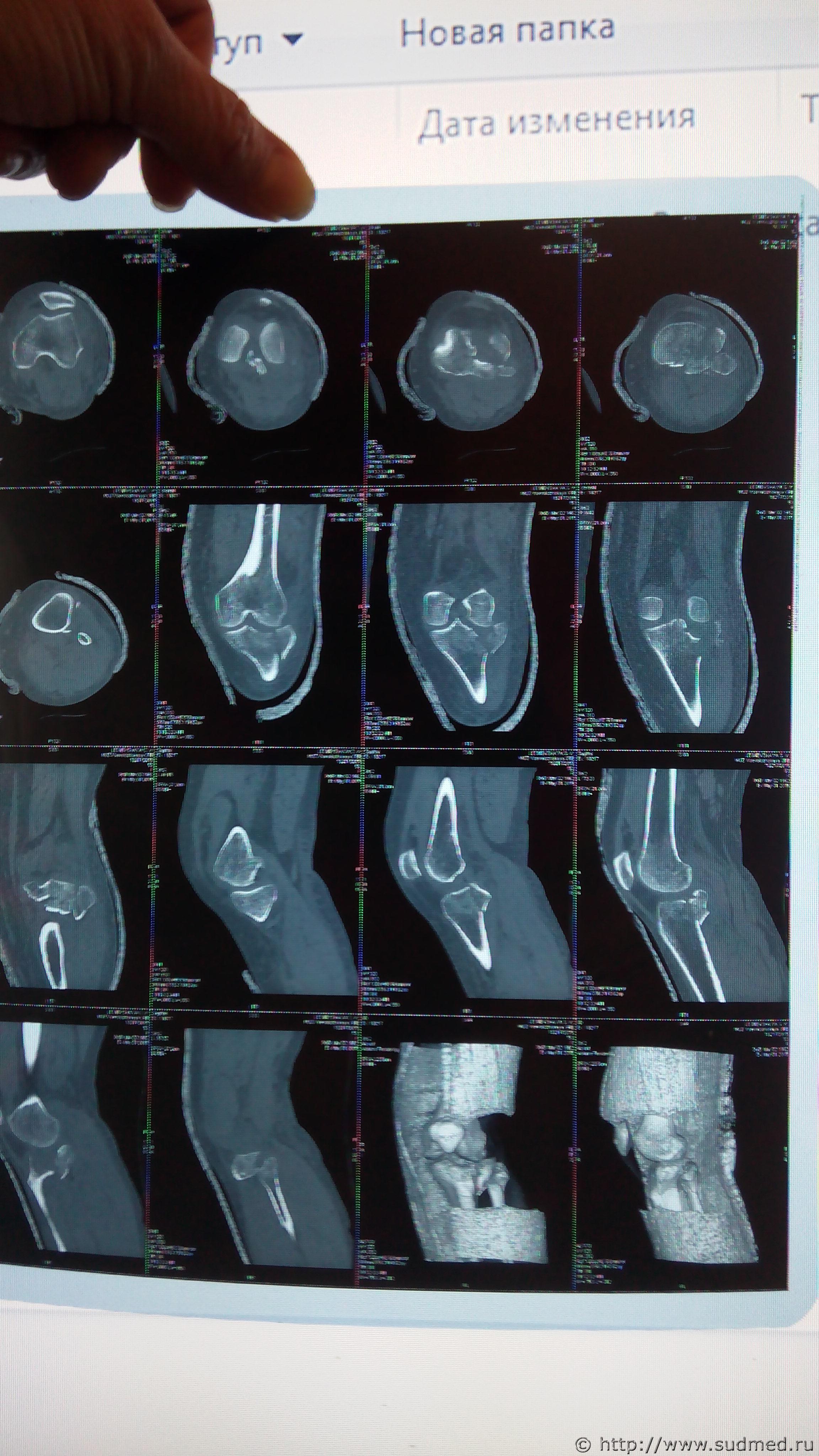 На пленке представлено мало сканов КТ. + смотреть пленку или сканы в цифровом виде - намного лучше, чем их фотокопии, переданные через интернет. Оптимально: 1.попросить рентгенолога скинуть Вам на флешку или на CD-диск ВСЕ сканы КТ коленного сустава (во всяком случае - ВСЕ выполненные в костном режиме - фактически их выполнено в несколько раз больше, чем напечатано на пленке). 2. попросить этого же и/или другого опытного рентгенолога внимательно посмотреть их все с единственной целью - установить, есть ли перелом диафиза большеберцовой кости (распространяется ли на него линия перелома) или же диафиз большеберцовой кости абсолютно цел. 3.Если признаков перелома диафиза нет - значит, тяжкого вреда здоровью именно за перелом кости нет (про нарушение функции сустава и невропатию - совсем отдельное дело, не о нем сейчас речь). Если же имеются рентгенологические признаки даже минимального распространения линии перелома на диафиз большеберцовой кости, тогда получаете официальное (письменное) заключение рентгенолога (рентгенологов) об этом, ходатайствуйте о доп.экспертизе с обязательным предоставлением на экспертизу всех рентгенограмм, КТ, заключений рентгенологов (о переломе диафиза большеберцовой кости). Спасибо , всего вам доброго . |