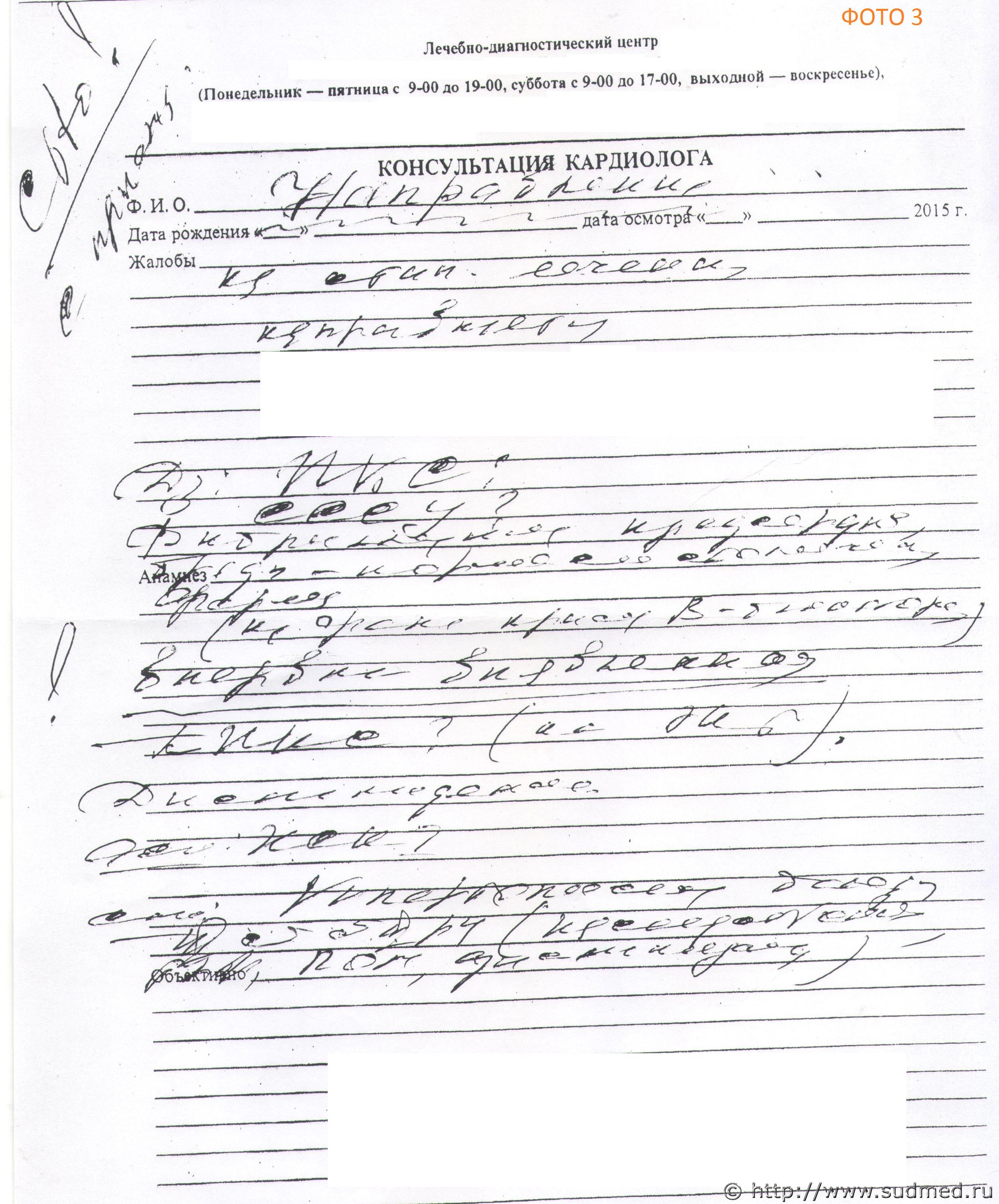 У моей семьи случилось горе, умер папа (55лет). Хочу разобраться не было ли халатного отношения врачей... В декабре 2015г. папа обращался к кардиологу, врач написал рекомендацию пройти каронарографию (фото №3-9). Он встал на учет у кардиолога в местной больнице. И поехал в Республиканский кардиологический центр на прием к врачу. Врач халатно и невнимательно относился к папе (разговаривал по телефону долгое время, не обращая внимания на него) и сказал, что каронарографию делать не нужно, а только следить за мерцательной аритмией (фото №1-2). Раз в квартал папа ездил на обследования (фото №10). В феврале 2017г. на работе, перед обедом, у него закололо плечо и появилось жжение в груди. После обеда он обратился с жалобами в мед.пункт. Ему замерили давление (было высокое) сделали укол магнезии и сульфокамфокаин и дали таблетки от давления. И отпустили работать. После работы он приехал домой, прилег отдохнуть. Через пол часа когда к нему подошли он уже не дышал. Вызвали скорую, спасти не смогли. После вскрытия в заключении о смерти написали - Атеросклеротическая болезнь сердца. Помогите разобраться, виноваты ли: врач не назначивший каронарографию и медики в мед.пункте не вызвавшие скорую, а отпустившие его работать? Куда обратится что бы наказали виновных? |