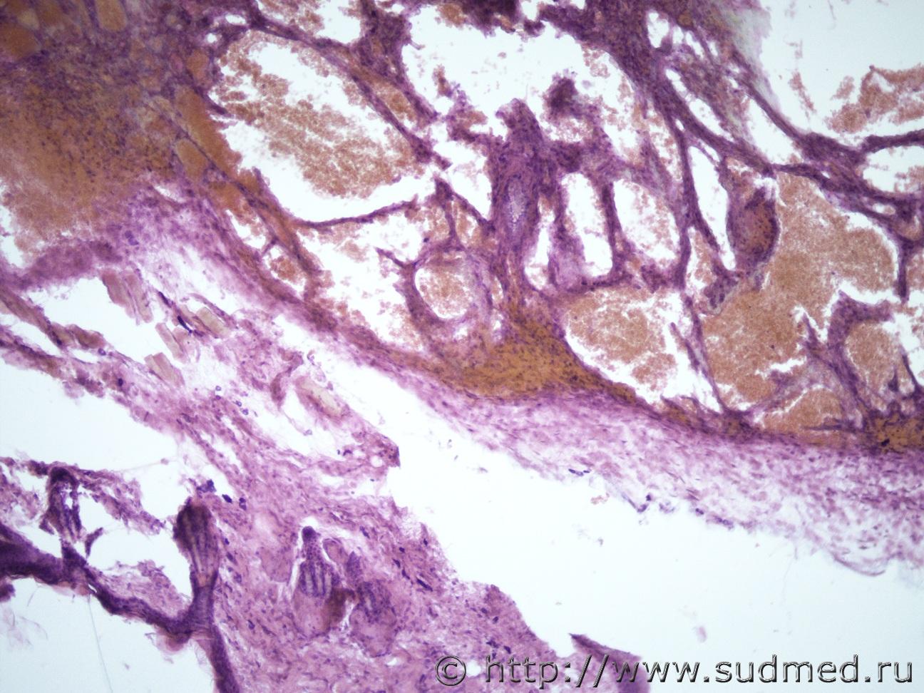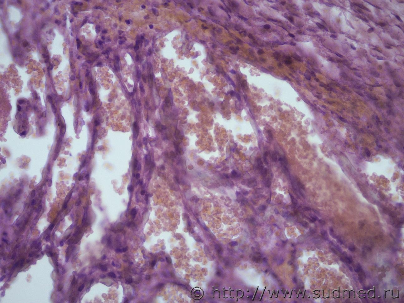 Ув. коллеги, может это тема не для нашего форума, но вдруг у кого нибудь будут идеи по этому поводу. В течении месяца выросло образование за ухом у лабораторной крысы округлой формы, плотно-эластической консистенции, в диаметре 1 см. Хозяин крысы подумал, что это абсцесс и решил сделать пункцию, после прокола истекло приличное количество крови и в течении 10-20 мин крыса скончалась. Макро- образование округлой формы, в тонкой капсуле, строма в виде ячеек, с кровоизлияниями.