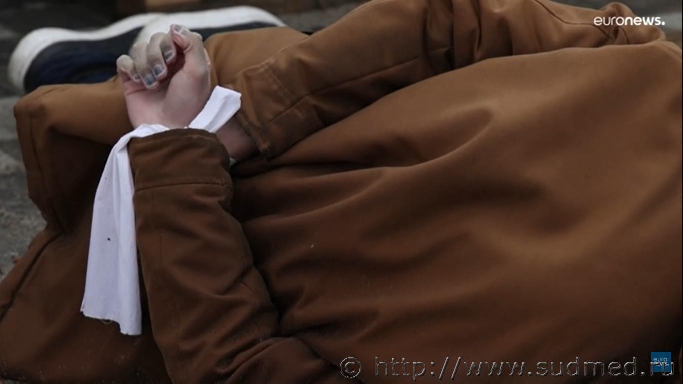 Так что кровь могла смыться дождём и уйти в грунт. Но вот почему нет, кроме единичных случаев, видимых повреждений одежды и/или тел... Того же с белым бантиком нашёл с другого ракурса: youtu.be/bdtaiM4Tb5k?t=41 |