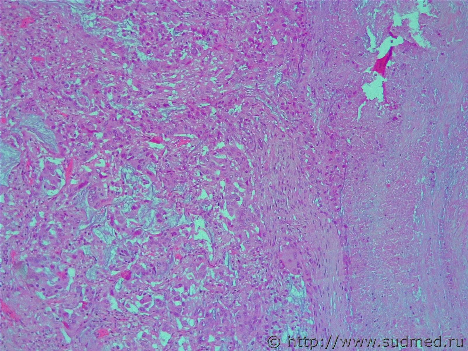 Фото не увеличиваются, но можно предположить, что это аденокарцинома.