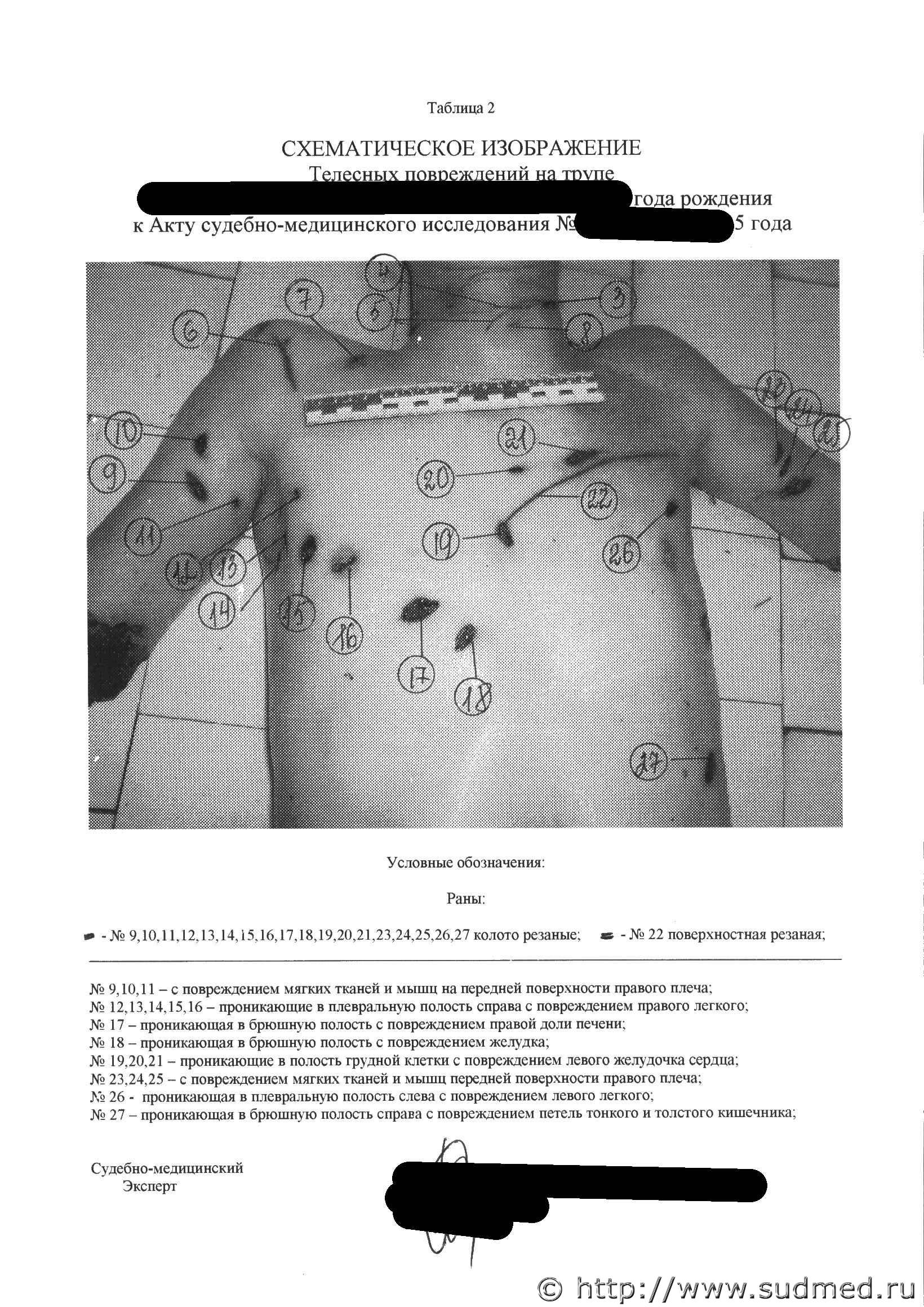 о фотографиях сделанных при исследовании трупа, Использую при работе цифр. фотоаппарат очень даже часто. Не всегда есть время сразу написать акт. По фото напишу и через месяц. Фотографирую для себя, в свой архив практически все трупы с травмами. (Это для работы, не подумайте что я какой то нездоровый коллекционер). 1. Общий вид. 2. Повреждения детально. 3. Вскрытую голову с кровоизлияниями в мягкие покровы, что бы не забыть количество и локализацию. 4. Головной мозг так же с локализацией кровоизлияний. 5. Так же открытые переломы. То есть где то на труп ( в зависимости от обстоятельств) от 3х до 15 фото. В среднем 3-5 штук. Затем сбрасываю на комп (место позволяет) в специальную папку, где есть подпапки с номером акта и фамилией. И так уже 4 года. Собралось на 1,5 ДВД. Я понимаю что эти фото неофициальные, но все может быть. Помогали часто. Часто через большой промежуток времени что бы объяснить следователю, просто показываю ему тычу пальцем и поясняю, что вот так мол и так, видишь как рана расположена и кровоизлияние и так далее. Официально в работе не применяю. Когда то был спорный случай, приехал куратор, начал наезжать по жалобе родственников, я ему неофициально показал фото, он глянул, и все вопросы отпали. Естественно кроме следователя эти фото никто не увидит. Уйду на пенсию уничтожу. Зачем хранить. А вообще не рекомендую использовать фото. Лучше рисовать схемы. Я рисую много. Следователи и судья довольны. Ведь так понятней. Много схем скачал с форума, много сделал сам из электронных энциклопедий, долго и нудно подчищал, кадрировал, переворачивал в разных ракурсах. Сейчас у меня большая коллекция. Нет такой области органа или косточки что бы я не смог на схеме понятно нарисовать в любой анатомической позиции. А экспертам не советую использовать фото. Много ненужных вопросов тогда возникает по экспертизе, типа а вот это смотрите что а у вас написано так, а почему оно такое а написано так, долго тогда объяснять что это не раны, а мол царапины (ссадины), что это мол рубленная рана а не ушибленная и т.д. В своей практике использовал фото для схем один раз, когда был расчлененный труп и что то около 110 ножевых ранений, а наносили удары ножом 2 человека, и очень трудно было в акте без схемы указать каждое повреждение, а тем паче указать где прижизненные где посмертные. Но все прошло гладко. Претензий не было. Примерно так, было 12 схем. Эскизы прикрепленных изображений |