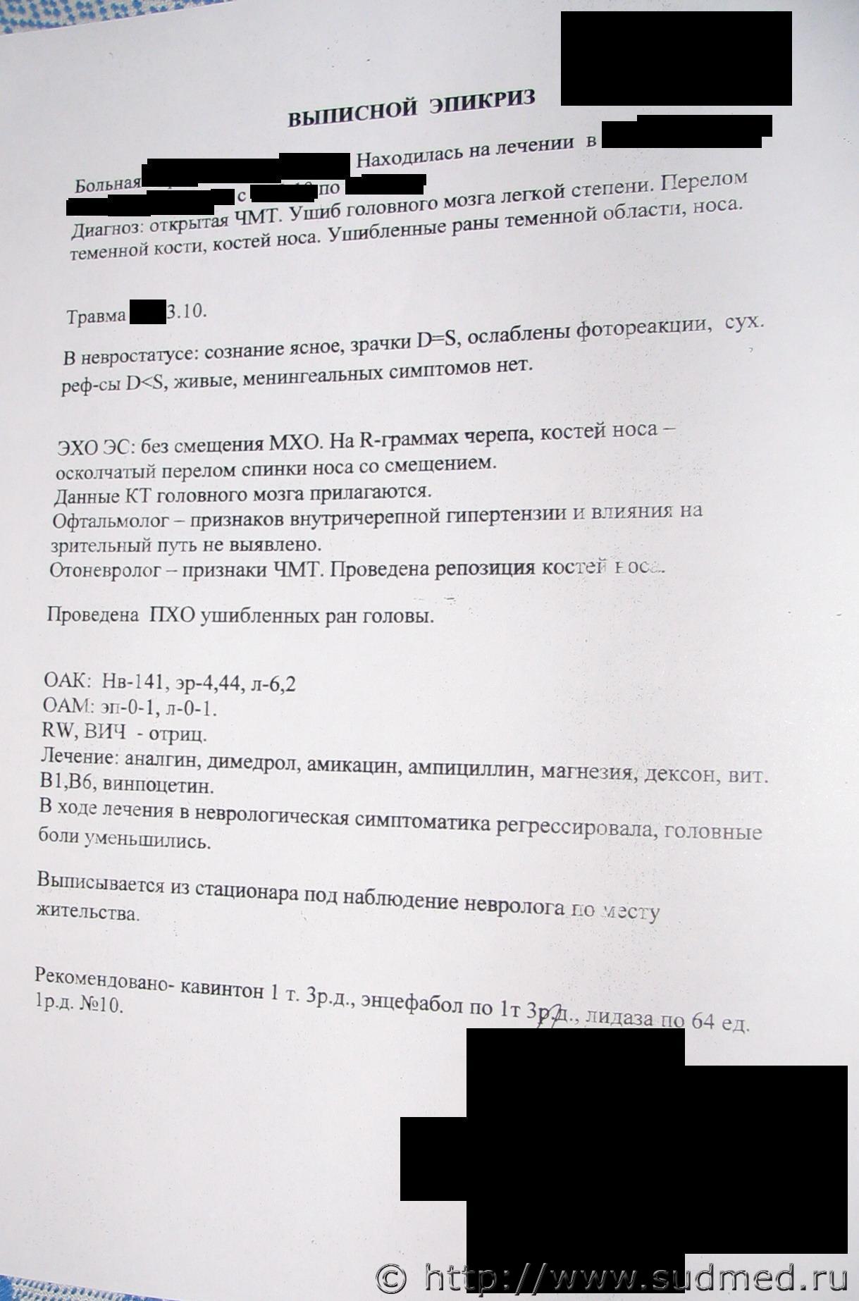 При поступлении был дан следующий диагноз (см. med_zakluchenie_pri_postuplenii.jpg): ОЧМТ, ушиб головного мозга, перелом правой теменной кости, Выписной эпикроиз (см. vipisnoy_epikriz.jpg): Открытая ЧМТ. Ушиб головного мозга лёгкой степени. Перелом теменной кости, Милиция сначала пыталась замять происшествие за отсутствием события преступления (якобы невозможно было определить степень вреда здоровью). После проверки материалов в прокуратуре дело всё-таки возбудили, но по 112 статье (Умышленное причинение средней тяжести вреда здоровью) вместо 111 статьи (Умышленное причинение тяжкого вреда здоровью) как должно было бы быть. То есть, нападавшего пытаются провести по лёгкой статье с небольшим сроком. Со слов следователя средний вред здоровью определила СМЭ Доступа к материалам СМЭ нет, поэтому привести их здесь не могу. В соответствии с пунктами 6, 6.1, 6.1.1, 6.1.2 и 10 приложения к приказу №194н по Министерству здравоохранения и социального развития Российской Федерации от 24 апреля 2008 года «Об утверждении медицинских критериев определения степени тяжести вреда, причинённого здоровью человеке» указанные признаки повреждений однозначно квалифицирует вред причинённый здоровью как тяжкий. Хотя бы по признаку "перелом правой теменной кости" -------------------- II. Медицинские критерии квалифицирующих признаков тяжести вреда здоровью 6. Медицинскими критериями квалифицирующих признаков в отношении тяжкого вреда здоровью являются: 6.1. Вред здоровью, опасный для жизни человека, который по своему характеру непосредственно создает угрозу для жизни, а также вред здоровью, вызвавший развитие угрожающего жизни состояния (далее - вред здоровью, опасный для жизни человека). Вред здоровью, опасный для жизни человека, создающий непосредственно угрозу для жизни: ... 6.1.2. перелом свода (лобной, теменной костей) и (или) основания черепа ... III. Заключительные положения 10. Для определения степени тяжести вреда, причиненного здоровью человека, достаточно наличия одного Медицинского критерия. 11. При наличии нескольких Медицинских критериев тяжесть вреда, причиненного здоровью человека, определяется по тому критерию, который соответствует большей степени тяжести вреда. -------------------- Вопросы: 1) Каким образом при таких признаках СМЭ могла определить степень вреда здоровью как среднюю? 2) Какие действия можно предпринять для пересмотра (обжалования) результатов СМЭ или организации повторной СМЭ с целью переквалификации дела на более тяжёлую 111 статью с тяжким вредом здоровью? Эскизы прикрепленных изображений |
