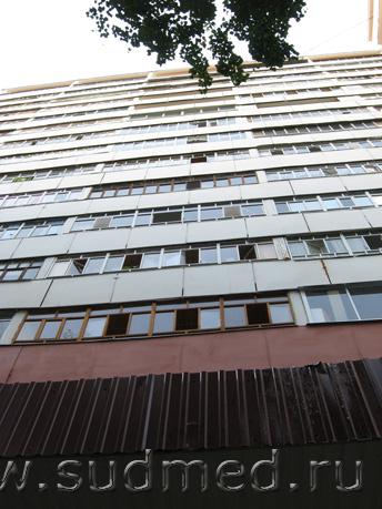 Данные случаи не так часты и зачастую представляют казуистику травмы. Предлагаю поделиться данными наблюдениями. Встретился в моей практике случай травмы от падения с большой высоты с полным разделением тела. Выезжал на ОМП сам. Летом 2010 г. эксперт прибыл на место происшествия. На площадке перед подъездом 16-ти этажного жилого дома обнаружена верхняя часть тела женщины, уровень отделения тела находился в области нижней трети живота. Нижняя часть тела, представленная областью таза и нижними конечностями находится на козырьке подъезда и расположена вдоль его переднего края. Поверхность разделения неровная и представлена мягкими тканями и фрагментами костей таза, слабо пропитанными кровью. Верхняя часть тела расположена на площадке под краем козырька подъезда (на одном условном уровне с нижней частью), лежит лицом вниз, руки согнуты в локтевых суставах, расположены по бокам от тела, головой ориентирована в сторону подъезда, а поверхностью разделения в сторону дороги. На верхней части тела надета сорочка розового цвета. От места расположения верхней части тела по площадке радиально расходятся прерывистые полосовидные следы маслянистой влаги светлого красного цвета длиной до 1,7 м, шириной до 5 см (следы разбрызгивания). В части данных следов частицы мягких тканей и фрагменты костей. Отдельные части мягких тканей расположены на расстоянии до 3,2 м от тела, среди них фрагмент кожи и подкожной клетчатки неправильной четырёхугольной формы размерами 15х20мм, толщиной до 4см, края его несколько осаднены, относительно ровные. Область разделения верхней части тела представлена петлями толстого и тонкого кишечника, печенью с разрывами капсулы и тканей, мягкими тканями, слабо пропитанными кровью. При осмотре дома и козырька подъезда установлено, что на предполагаемой траектории падения тела располагается край козырька подъезда, на фасадной поверхности которого закреплены листы профнастила – металлического листа толщиной 0,6 мм. Верхний край профнастила находится на одном уровне с поверхностью борта козырька подъезда. Борт козырька из бетонной плиты, высота его 30 см, ширина 11 см. В месте удара тела поверхность борта покрыта светло-красной маслянистой влагой. Верхний край листа профнастила деформирован на участке шириной 32 см в виде смятия и отгибания, на поверхности листа следы буро-красной маслянистой влаги. Математические расчеты. Поскольку свободное падение представляет собой равноускоренное движение без начальной скорости, то к нему применимы все формулы, выведенные для равноускоренного движения. При известной высоте падения мгновенная скорость вычисляется по формуле vІ =2gh, время падения по формуле tІ =2h/g. Проведённым математическим расчётом установлено, что высота свободного падения тела (от перил балкона на 16 этаже до козырька подъезда) составила 41,3 м, время преодоления данного участка 2,9 с, скорость в момент удара о край козырька подъезда 28,5 м/с или 102,4 км/ч. При относительно небольших скоростях падения влияние сопротивления воздуха невелико, в связи с чем данный расчет проведен без учёта сопротивления воздуха. Таким образом, представленный нами случай показывает, на сколько велика может быть кинетическая энергия падающего тела и служит подтверждением полиморфизма травмы данного вида. Эскизы прикрепленных изображени