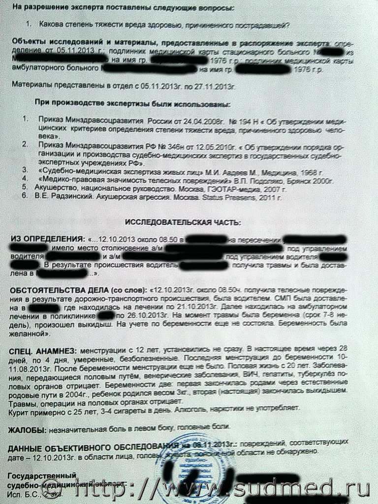 Тяжкий вред здоровью после ДТП, прерывание беременности |