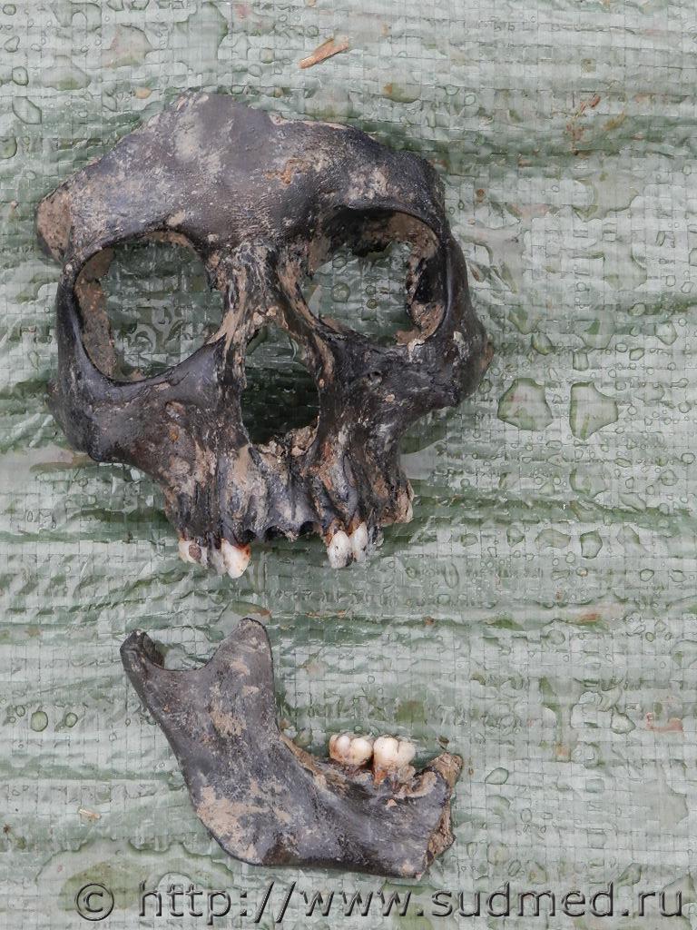 Доброго всем времени суток! Обращается к вам командир поискового отряда "СВЕТОЧ". На весенней ВАХТЕ ПАМЯТИ нами обнаружены останки 21-го человека, погибших при защите Отечества в годы Великой Отечественной войны. До сего времени при составлении акта эксгумации у меня не возникало сомнений к половой принадлежности останков, но в этот раз закрались сомнения. Есть лицевая часть черепа и фрагмент нижней челюсти, сильно отличающиеся от других. Подскажите, пожалуйста, можно ли по фотографии идентифицировать останки по возрасту и половой принадлежности? Фото прилагаю.