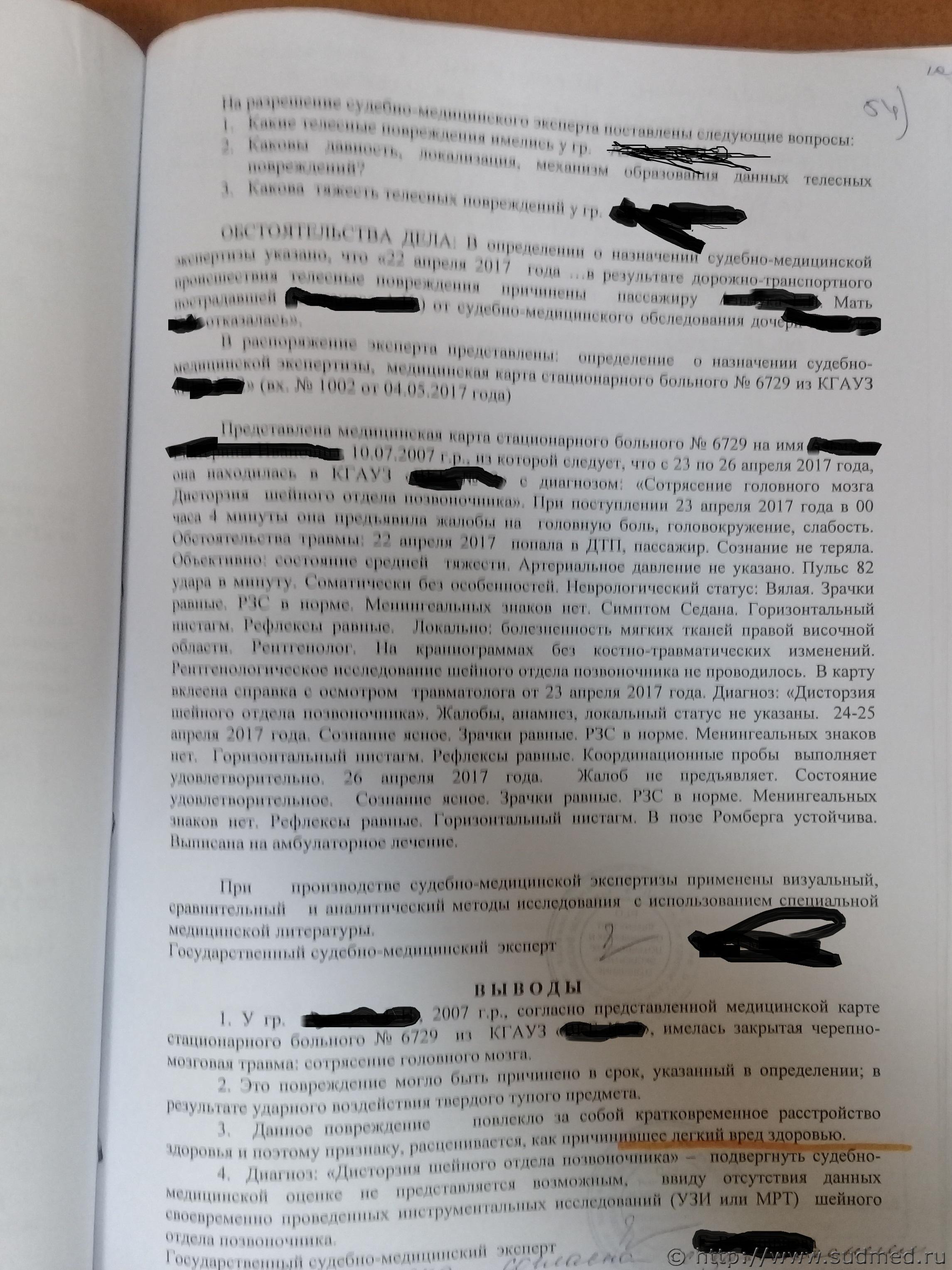 Помощь в определении тяжести вреда, Травма получена в результате ДТП, действительно ли было СГМ, если пост |