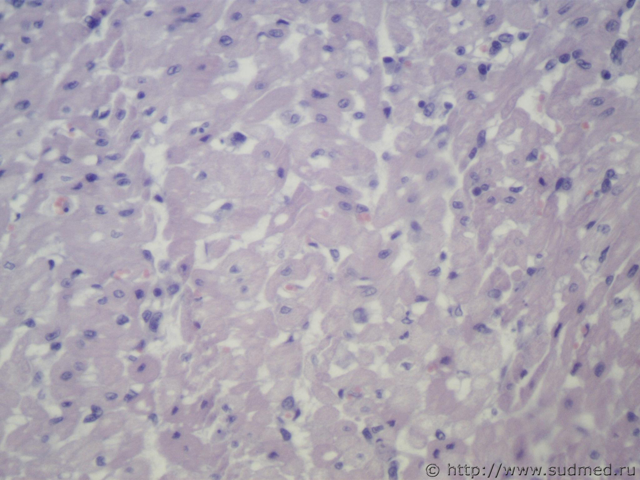 Я являюсь начинающим ветеринарным врачом со специализацией по вскрытию мелких домашних животных. Так как общая патанатомия почти полностью совпадает у людей и животных, то хотелось бы узнать ваше мнение по следующему случаю. Кошка 8 месяцев. На вскрытии обнаружены полосчатые кровоизлияния миокарда; в области верхушки сердца крупный белый очаг примерно 0,6х0,6см, на мой взгляд, представляющий собой инфаркт. Вопрос в том, что существует мнение, что инфаркт миокарда у кошек и собак невозможен по неясным лично мне причинам. Можно ли говорить об инфаркте в данном случае? Фото макро: с вырезки (только верхушка сердца и часть левого желудочка) гистология: окраска гематоксилин и эозин (1-4) и ГОФП методом (5-7). С уважением. Эскизы прикрепленных изображений |