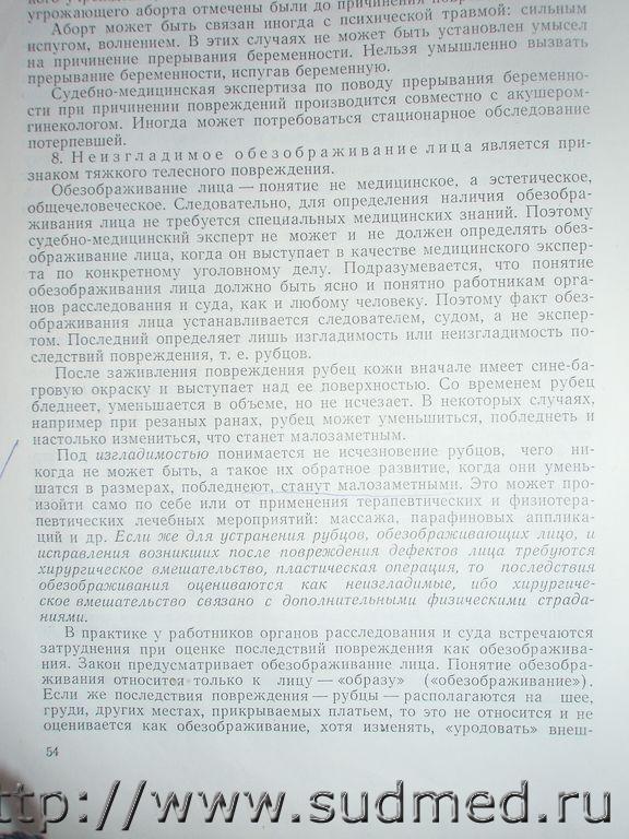 Если цепляться за русский язык, то "Критерии..." вообще лучше не открывать. Пункт 6.10 - еще из числа более ли менее приемлемых. Ну... написано там "масло масляное". Сначала "не исчезают самостоятельно без хирургического устранения", потом - еще усилили: "и для их устранения требуется оперативное вмешательство". Дак это же все для нас, непонятливых, старались. Если цепляться за слова, что получится, что самые грубые и обширные повреждения, или, например, нарушения мимики, которые невозможно устранить хирургическим путем, не относятся к неизгладимым? А если вопросы изгладимости решаются по рубцам, наподобие того, что показано на фото 1 в позапрошлом посте, - то это, по моему скромному убеждению, полная Конечно, следователь или, особенно, судья, особенно в гражданском процессе, в зависимости от особенностей рассматриваемого дела, имеет право выспрашивать что угодно в отношении перспектив любого, даже самого незаметного повреждения, например, если речь идет о результатах пластической операции. Но при ответе на такие вопросы я бы категорически воздержался от терминов "изгладимый" и "неизгладимый" |