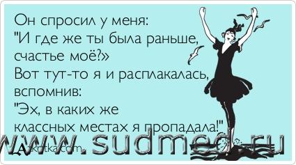 - Да у нас. Но не волнуйся. Мы мало чему верим из того, что она рассказывает о тебе. Если вам уж так сильно захотелось пообниматься с мужиками - запишитесь в секцию греко-римской борьбы. — Ты какой-то бледный, что случилось? — Да понимаешь, жене уже неделю снится, что она встречается с Путиным. — И что? — Вчера наорал на нее, сказал, чтобы она прекратила эти встречи. — Ну? — Мне сегодня ночью приснился полковник ФСБ и намекнул, чтобы я не лез в это дело. Разводятся двое. Судья спрашивает мужа, по какой причине он решился на развод. Тот ответил, пряча глаза: - Да она оказалась холодной женщиной. Жена, не выдержав такого, кричит: - Может я где-то и холодная женщина, то там где я горячая ты уже не достаешь. Почему в контакте нет статуса в "пассивном поиске"? Вроде бы и хочется, но искать лень. - Мам, я выхожу замуж. - Мусор захвати. Никогда не забывай 3 типа людей. Тех, кто помогает тебе, когда ты в трудном положении. Тех, кто покидает тебя, когда ты в трудном положении. Тех, кто становится причиной твоего трудного положения. — Чувак, у меня для тебя две плохие новости. — Объедини их. — Твоя девушка изменяет нам обоим. Глядя на то, что вам нравится, я горда тем, что не нравлюсь вам. А ведь трогательное прощание может окончиться нехилой ссорой, если потрогать не за те места... |