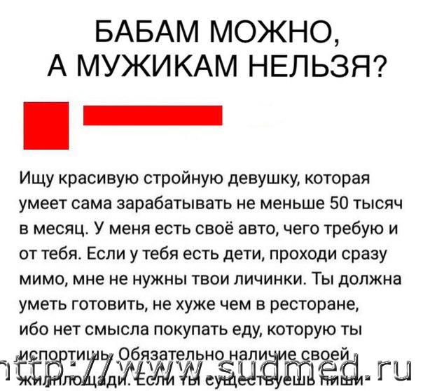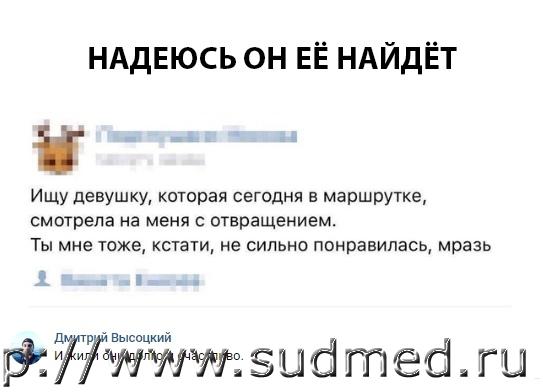 Приезжают молодожёны в деревню. День не выходят из спальни, два. Бабушка им кричит: - Внучек, вы бы вышли, поели хоть. - Да мы бабушка сыты, мы плодами любви питаемся! - Д а вы питаться питайтесь, только кожуру от них за окно не бросайте, а то гуси давятся... Маркетолог, догадавшийся положить на одну полку тесты на беременность и презервативы, далеко пойдёт. Возвращаться плохая примета... Особенно если ты замужем... И трое суток не была дома... Очень ленивая ночная бабочка называется прокраститутка. - я думала ты не такой. - это же ты мне изменила. - я думала ты благородный и простишь меня, но ты такой же как все. У нас в стране, к любому мужчине можно подойти, обнять его и сказать: "Не переживай, все образуется!" P.S. Объявление в помощь |